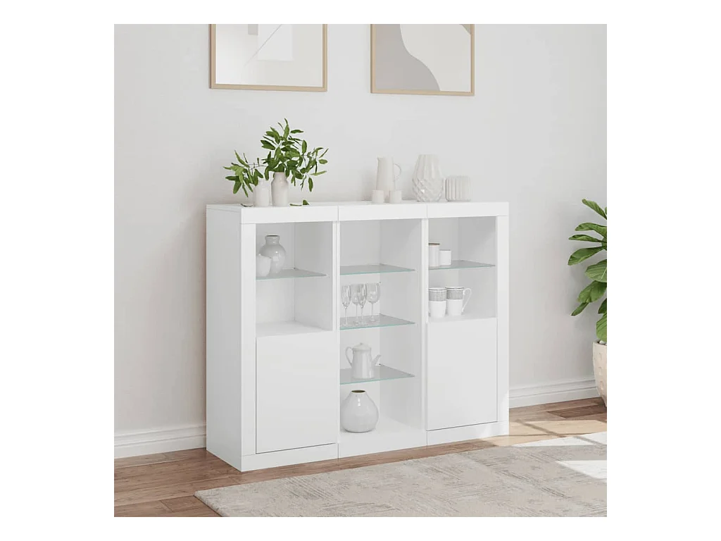 Sideboards mit LED-Leuchten im 3er-Set Anrichten Weiß Holzwerkstoff -RM31731