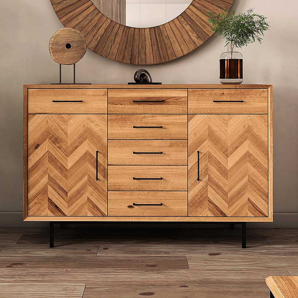 Sidebord Esszimmer aus Wildeiche Massivholz sieben Schubladen