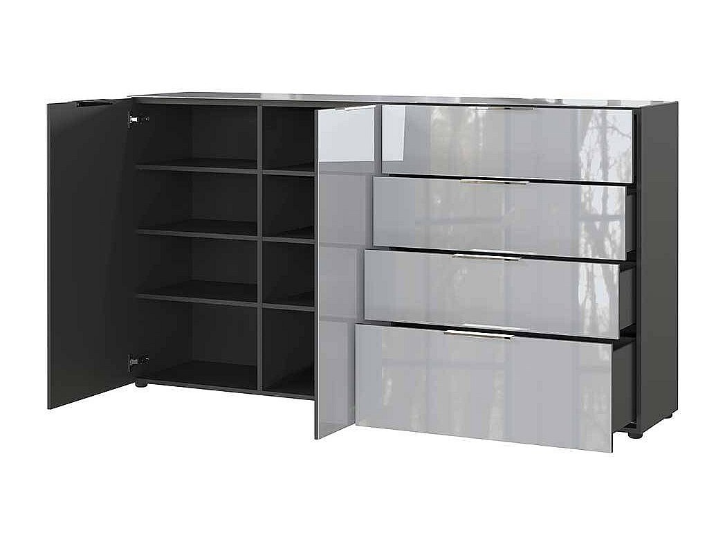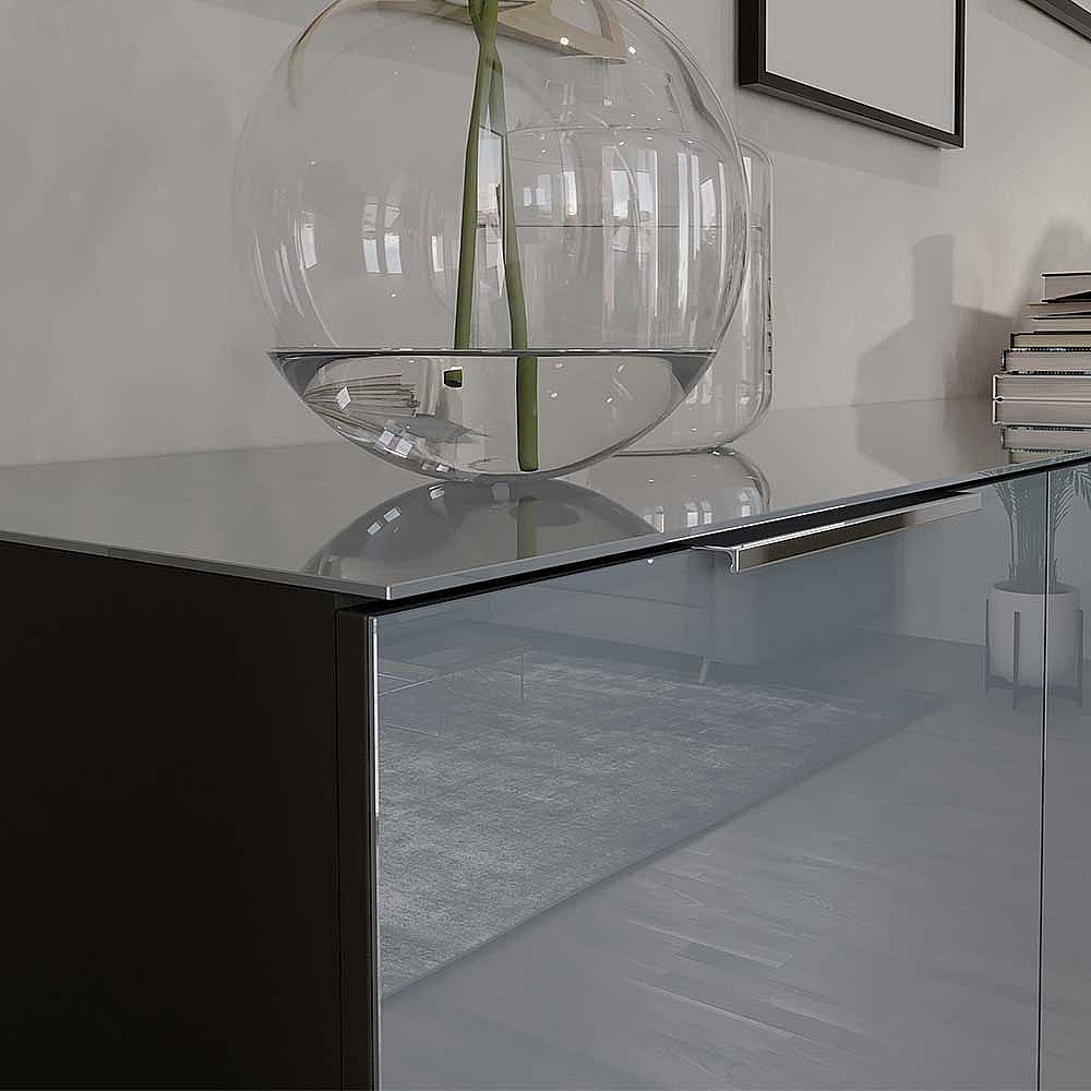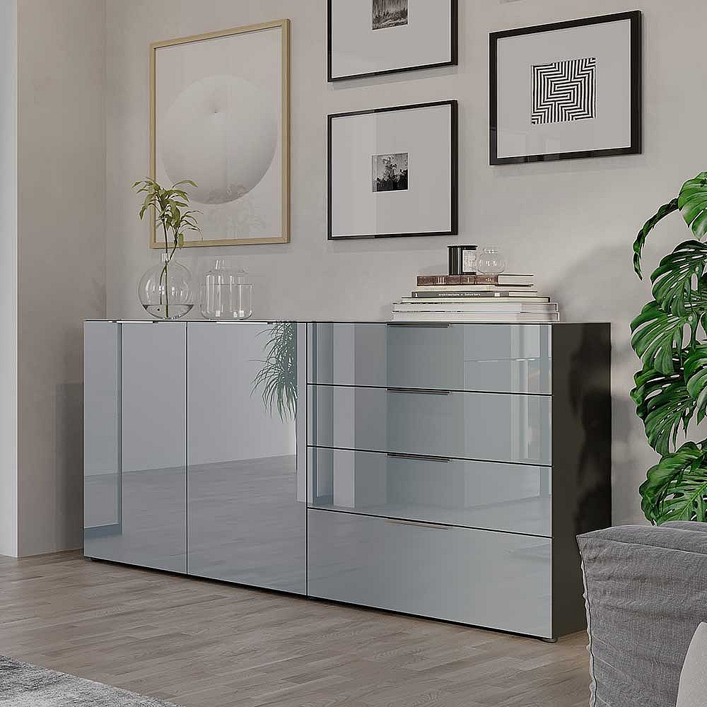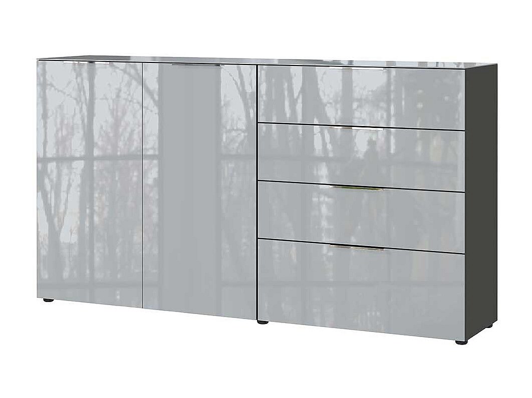 Sidebord glasbeschichtet in modernem Design vier Schubladen und zwei Türen