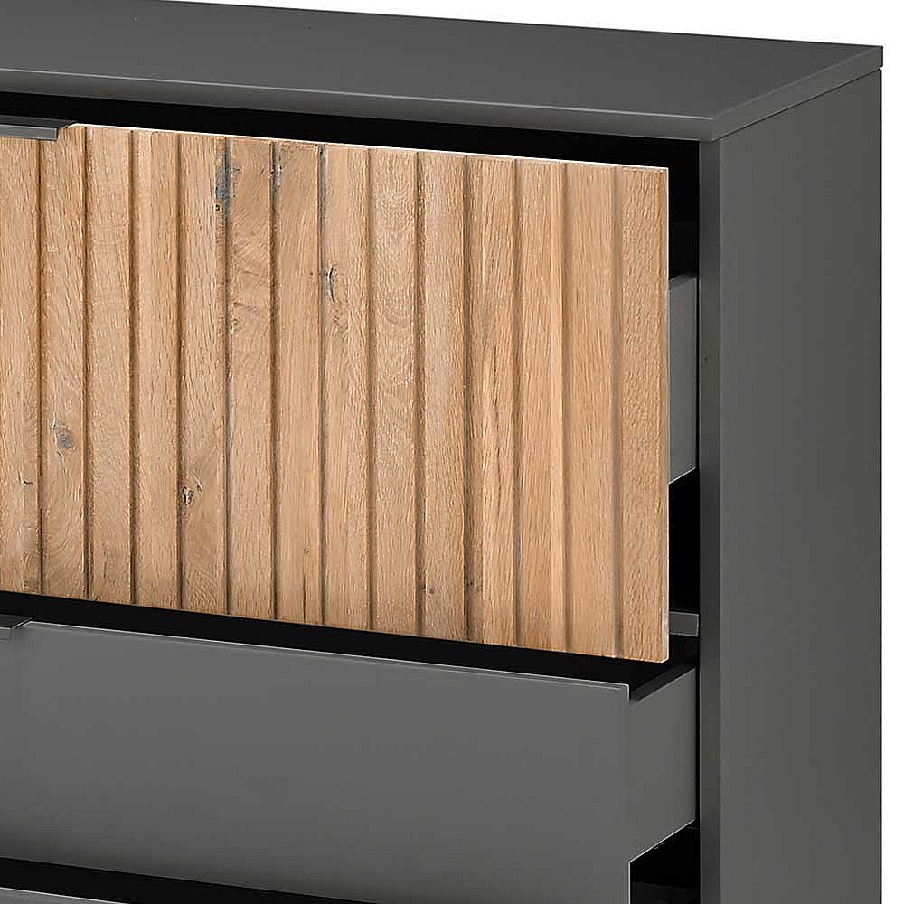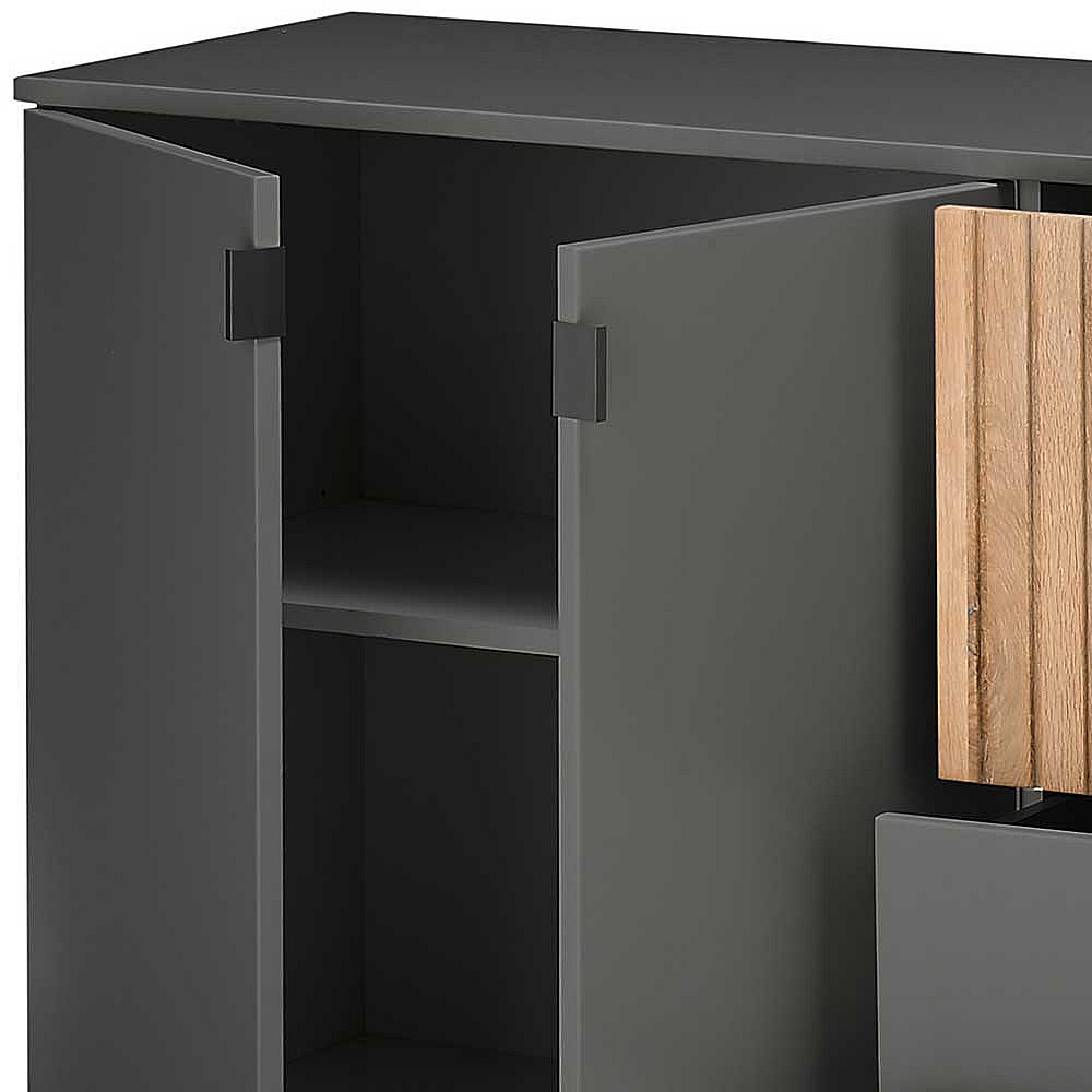 Sidebord in Eiche Bianco und Anthrazit drei Schubladen und zwei Türen