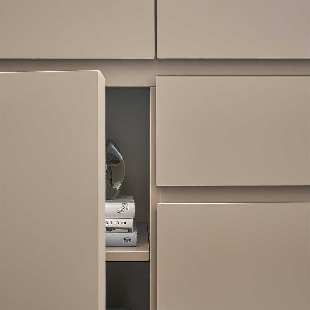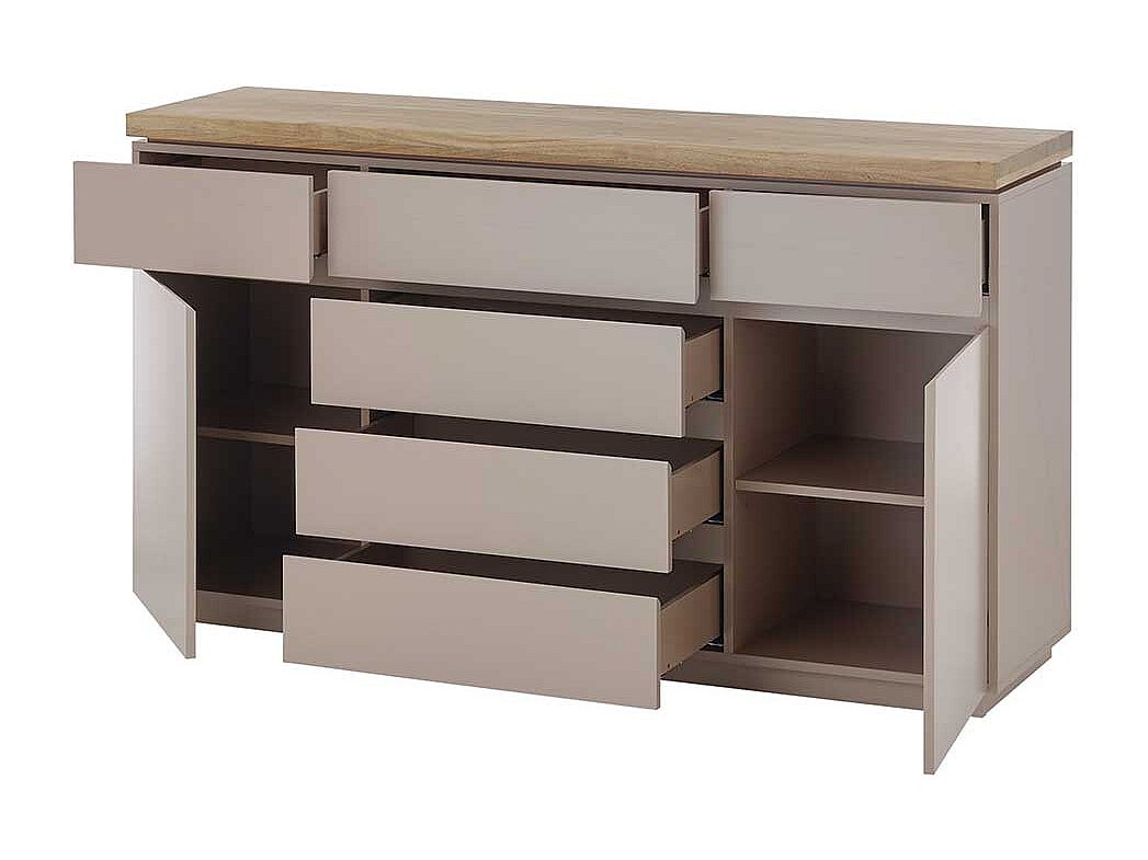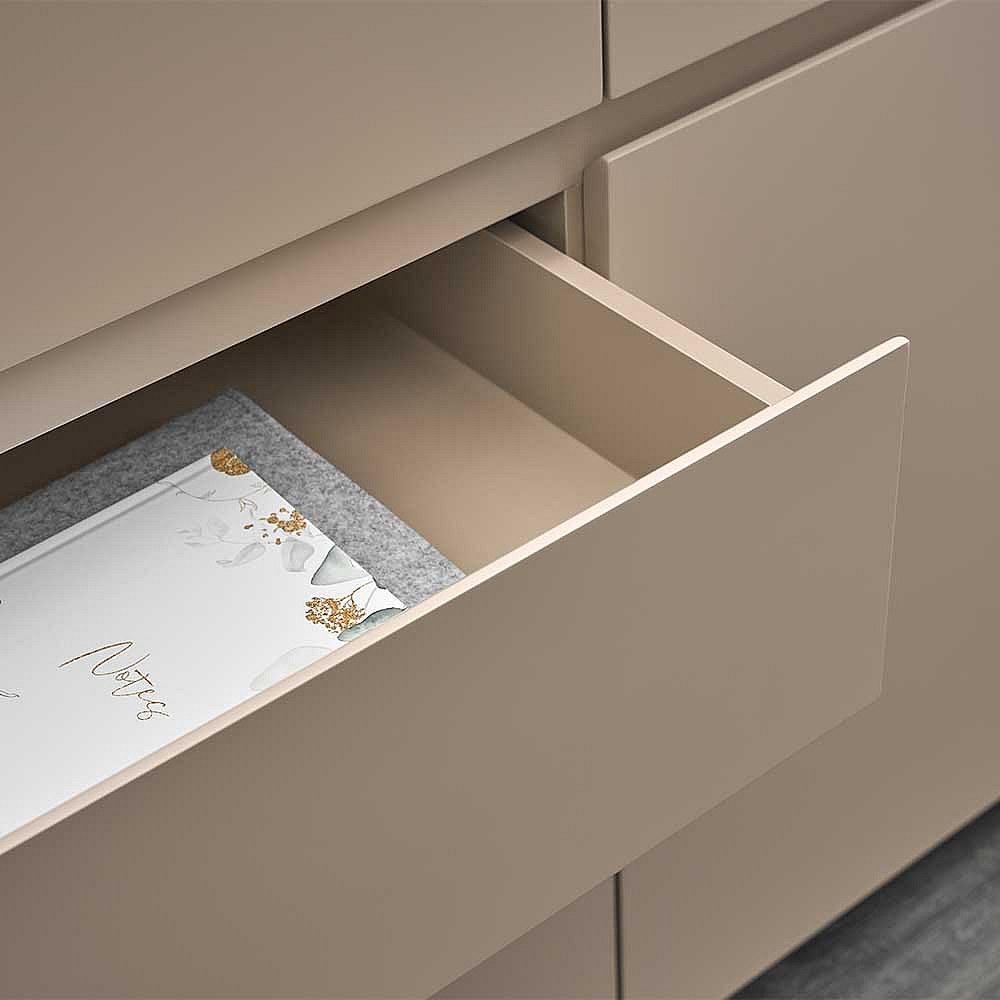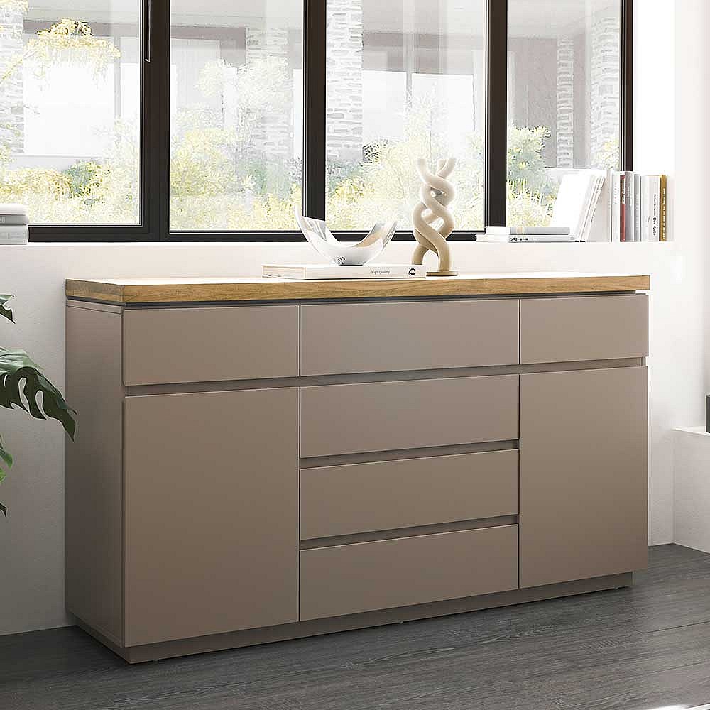Sidebord modern in Taupe sechs Schubladen und zwei Türen