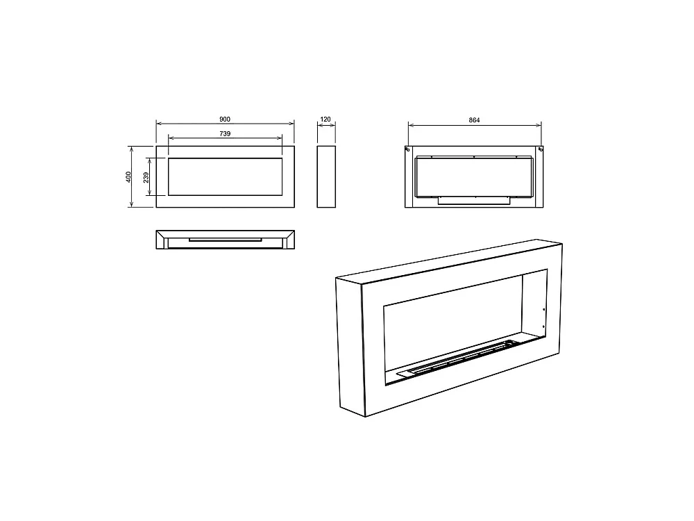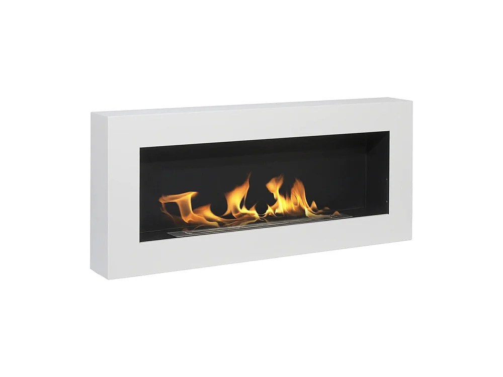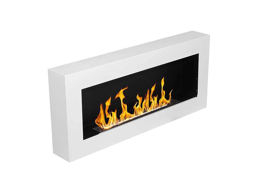 Siena weißer, wandmontierter Bioethanolkamin, L 90 x T 12 x H 40