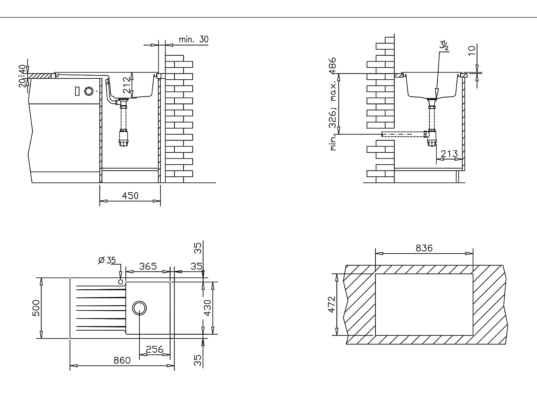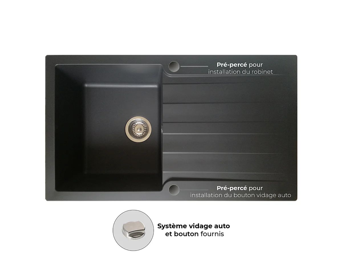 Sierra Spülbecken 1 Becken mit Abtropffläche aus schwarzem Kunststoff Essebagno