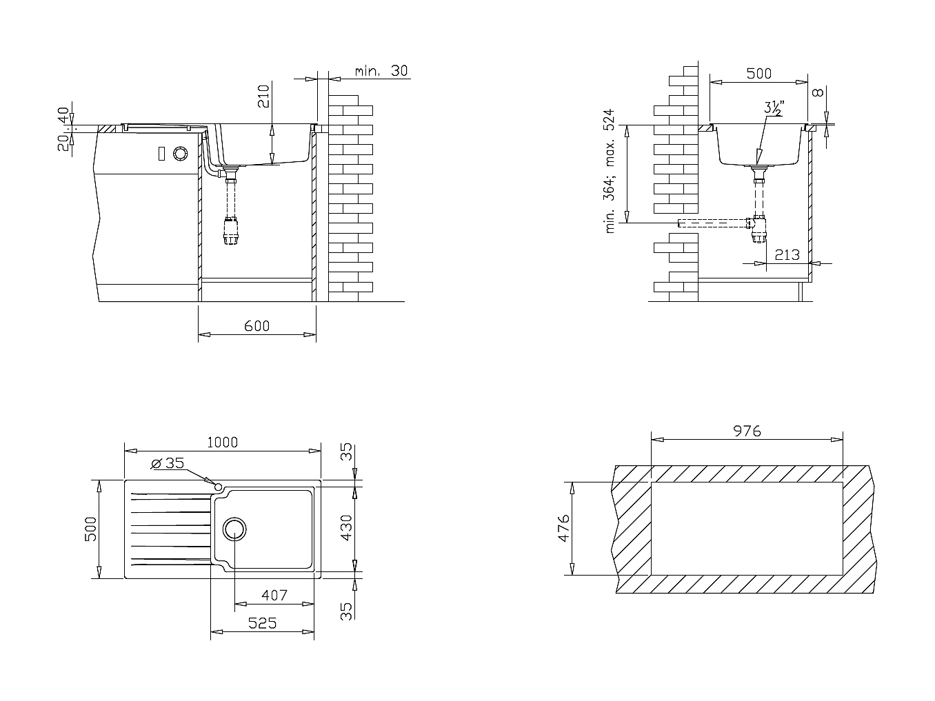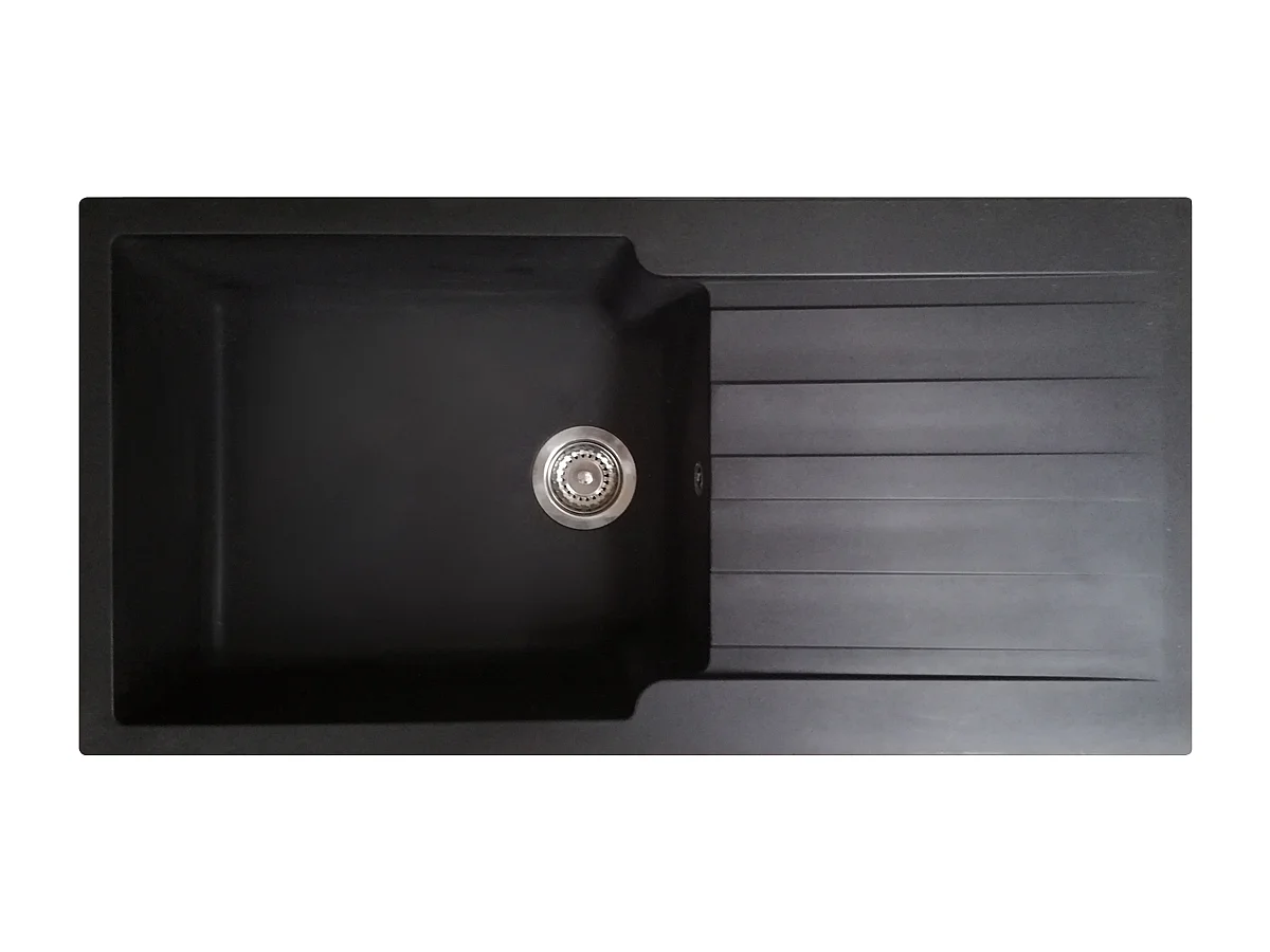 Sierra Spülbecken 1 großes Becken mit Abtropffläche aus schwarzem Kunststoff Essebagno