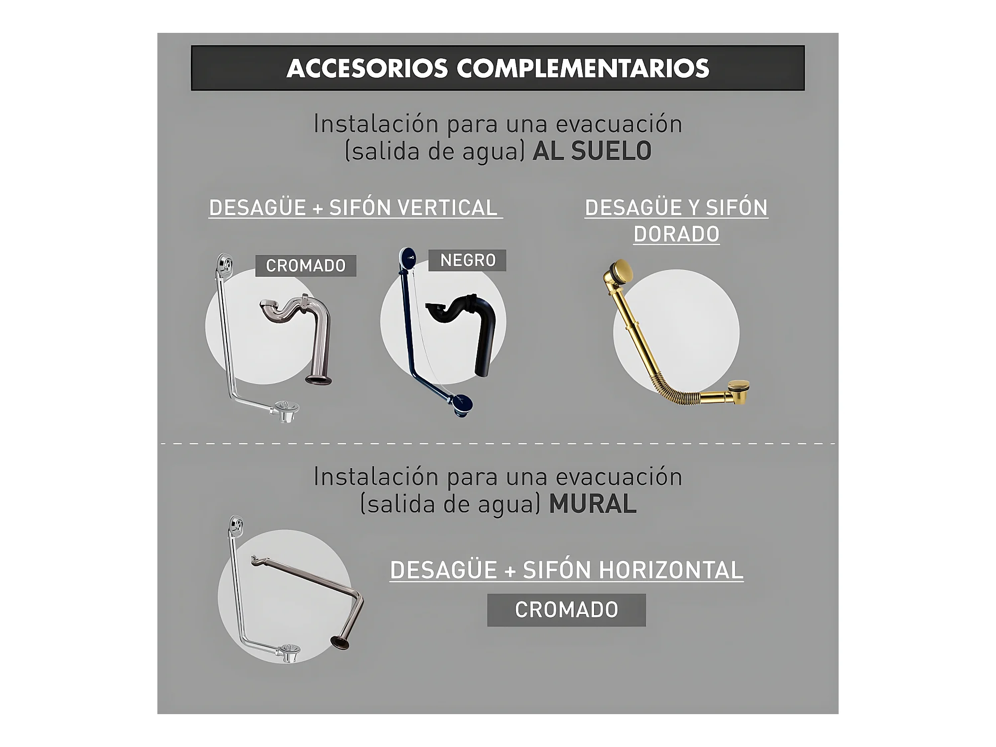 Siphon horizontal CRAWLEY für Gusseisen und Resicryl® Retro-Badewannen