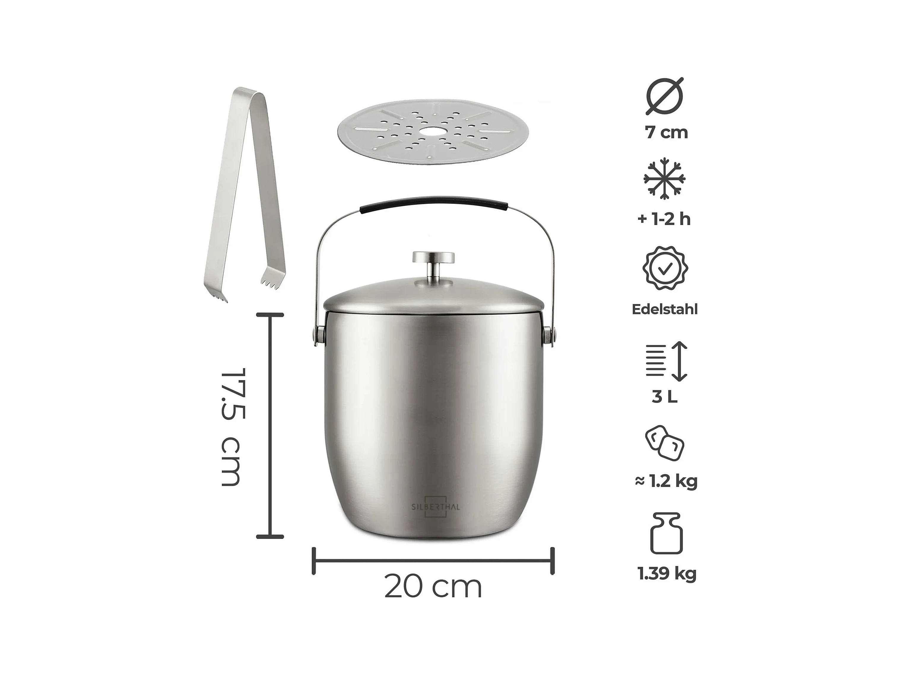 SILBERTHAL Großer Eiseimer 3L mit Deckel und Zange