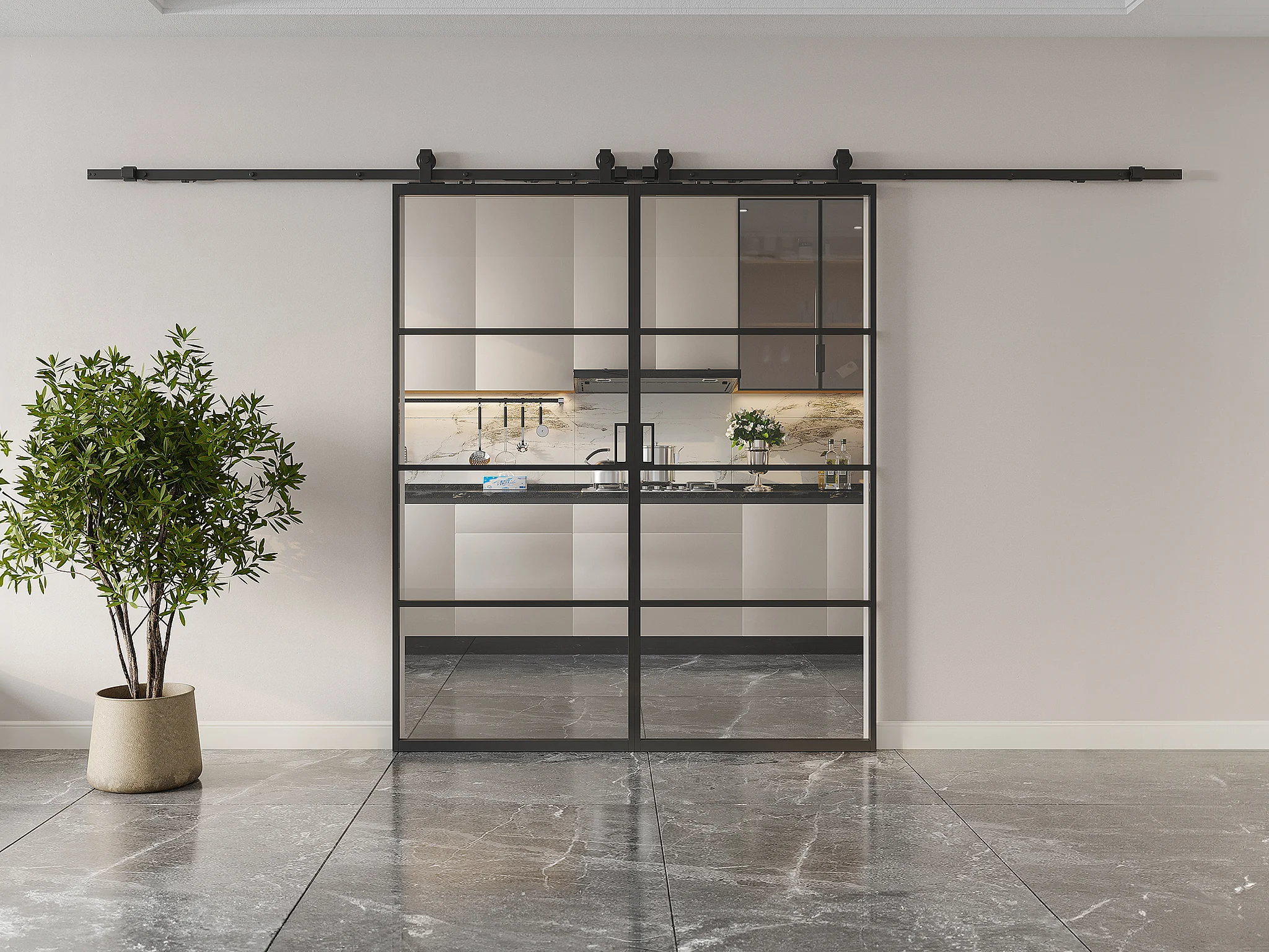 Doppel-Schiebetür mit Laufschienensystem - Aluminium & rauchfarbenes Sicherheitsglas transparent - 2 x 205 cm x 63 cm - SINCA II