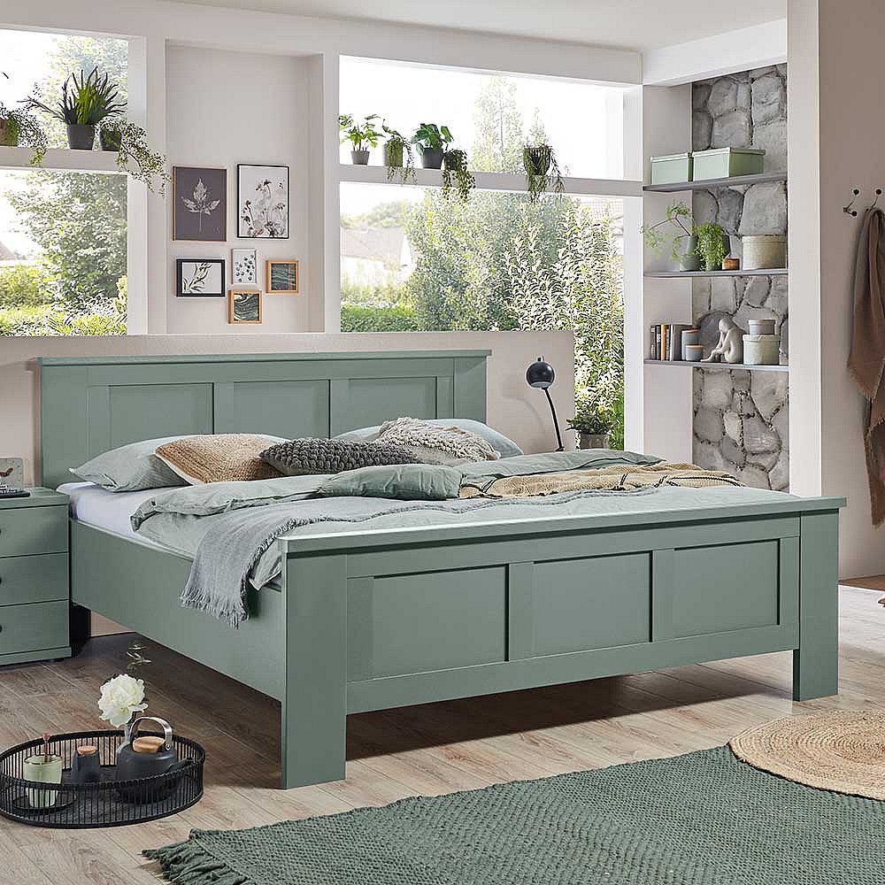 Single Bett 140x200 auch in Überlänge Landhausstil Graugrün