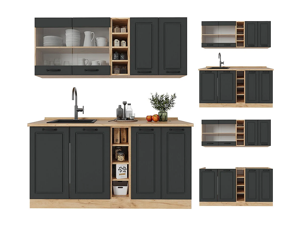 Singleküche anthrazit landhaus/goldkraft eiche 160x60x81.6 r-line