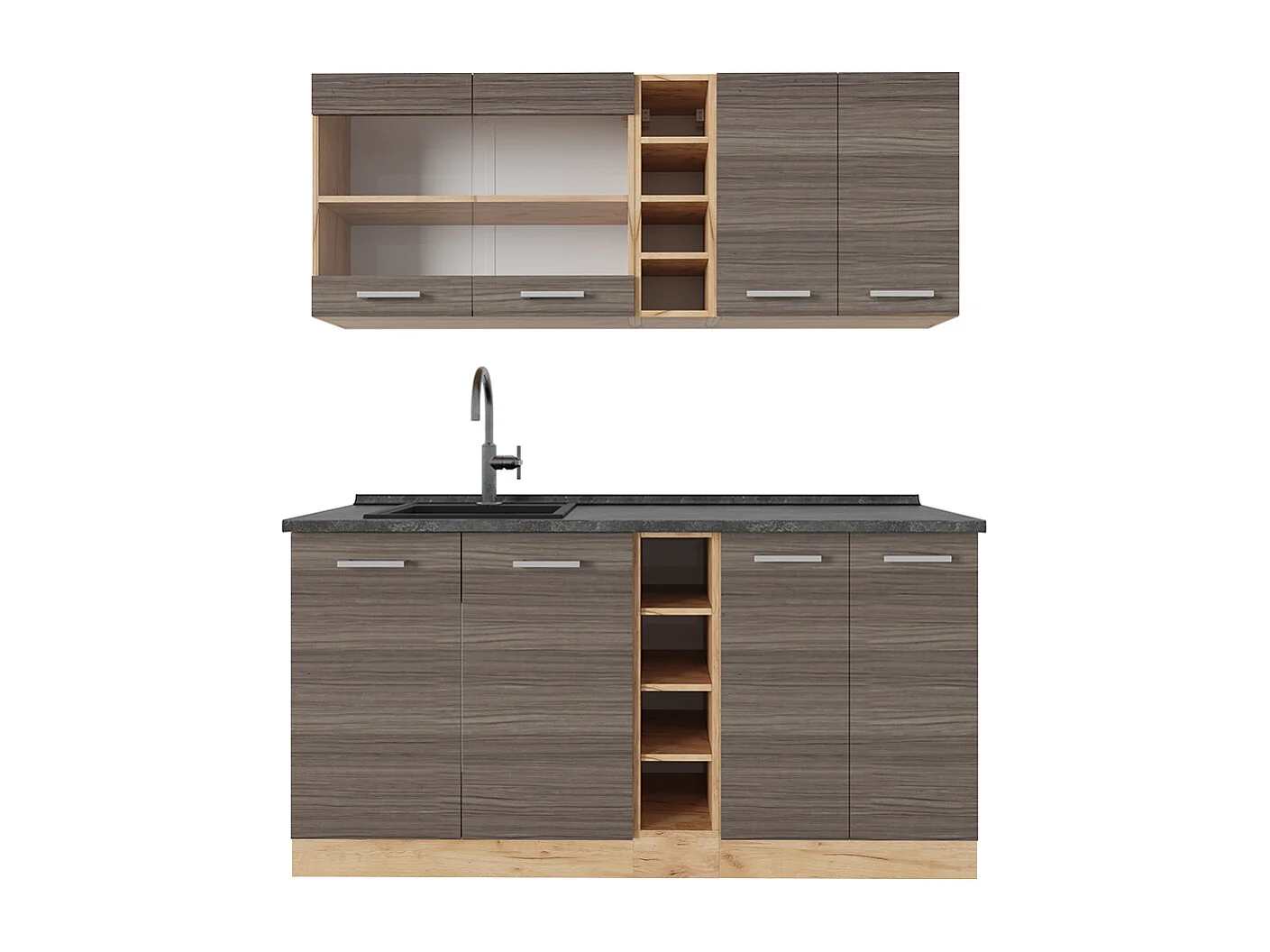 Singleküche edelgrau/goldkraft eiche 160x60x81.6 r-line
