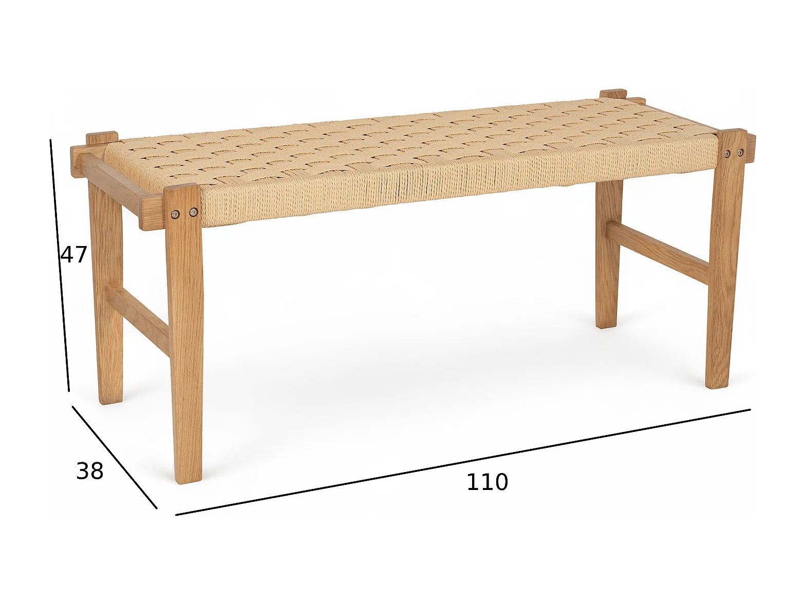 Sitzbank 110 cm Nobel - Papiergarn & Massives Eichenholz - Wildeiche