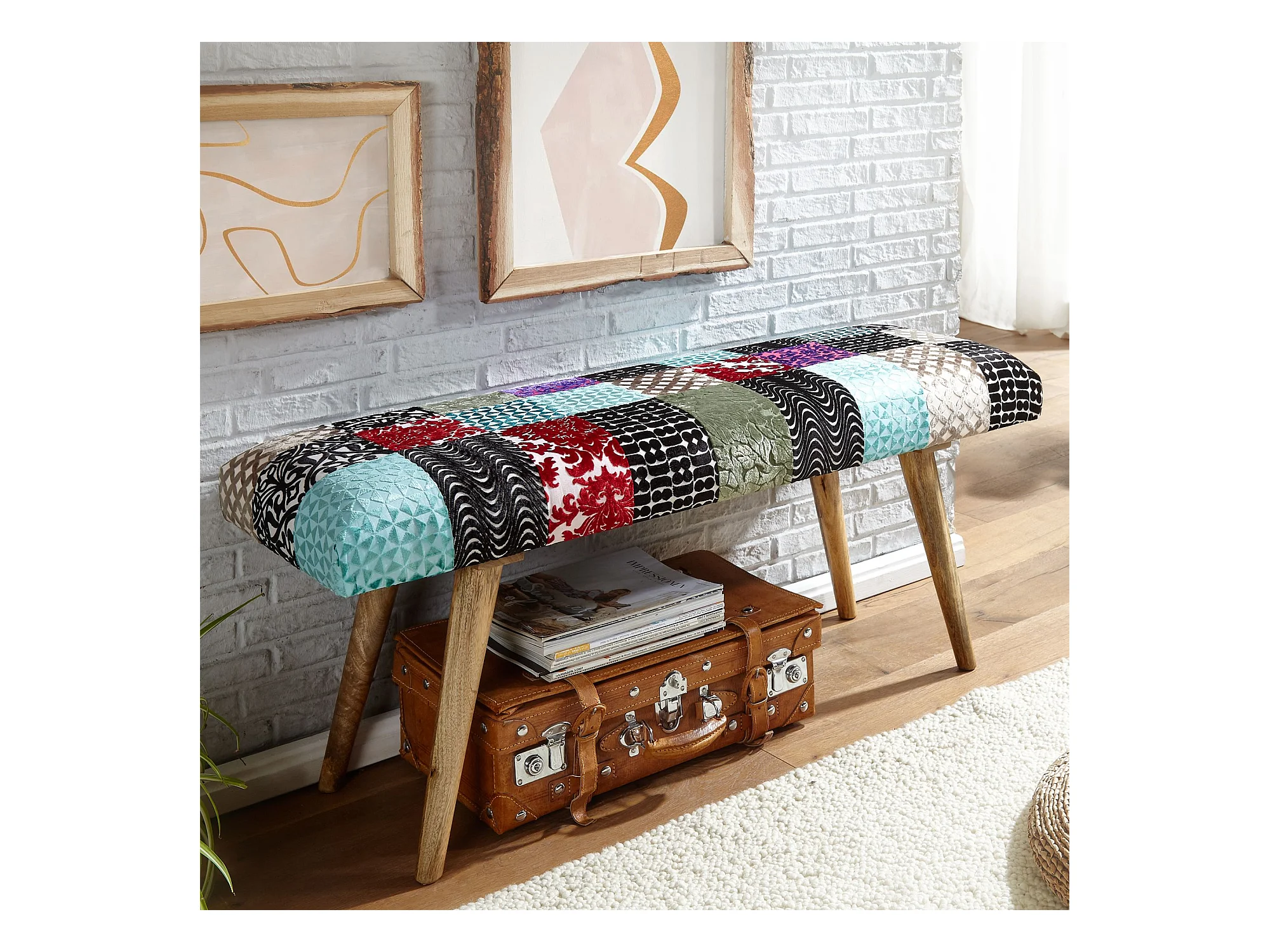 Sitzbank Bettbank Samt 117 cm Patchwork Flurbank Polsterbank Bank Modern