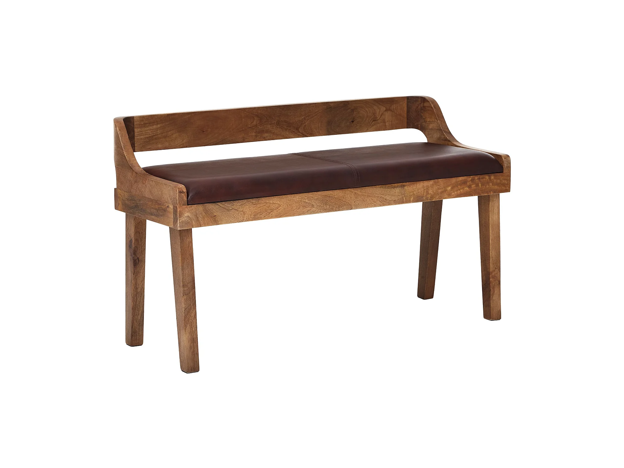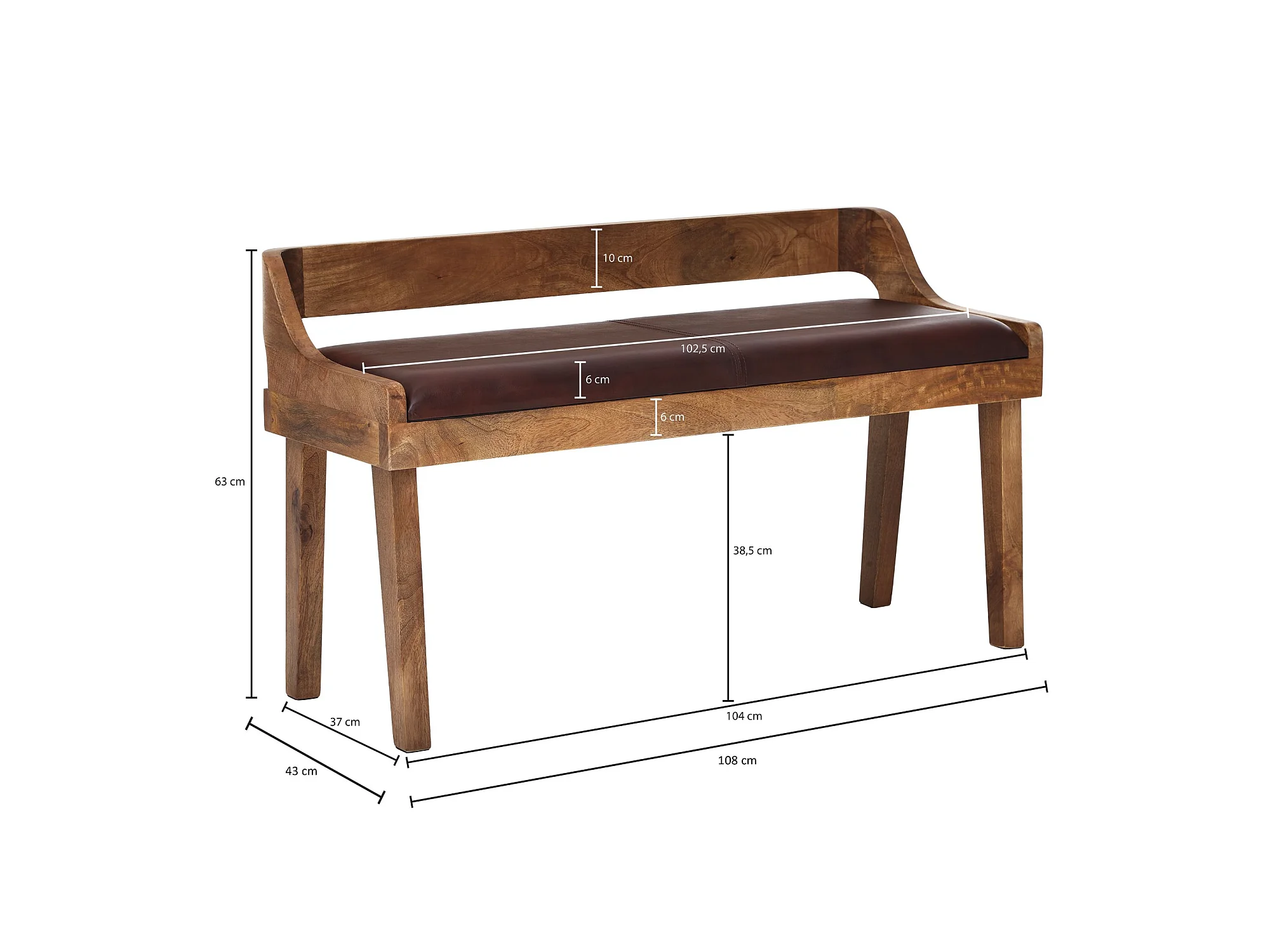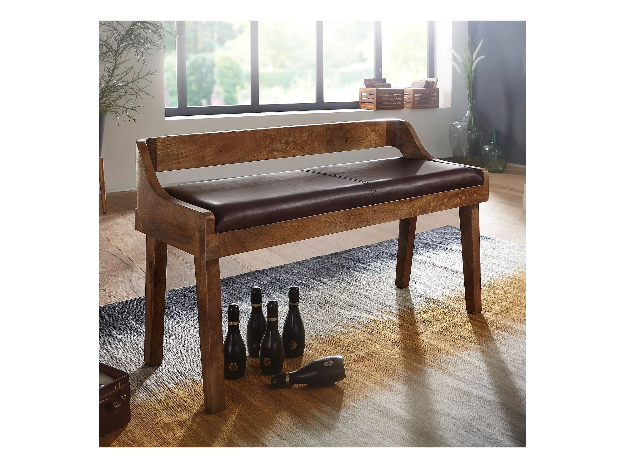 Sitzbank Echtleder 108 cm Lederbank Flurbank Rückenlehne Massivholz Bank