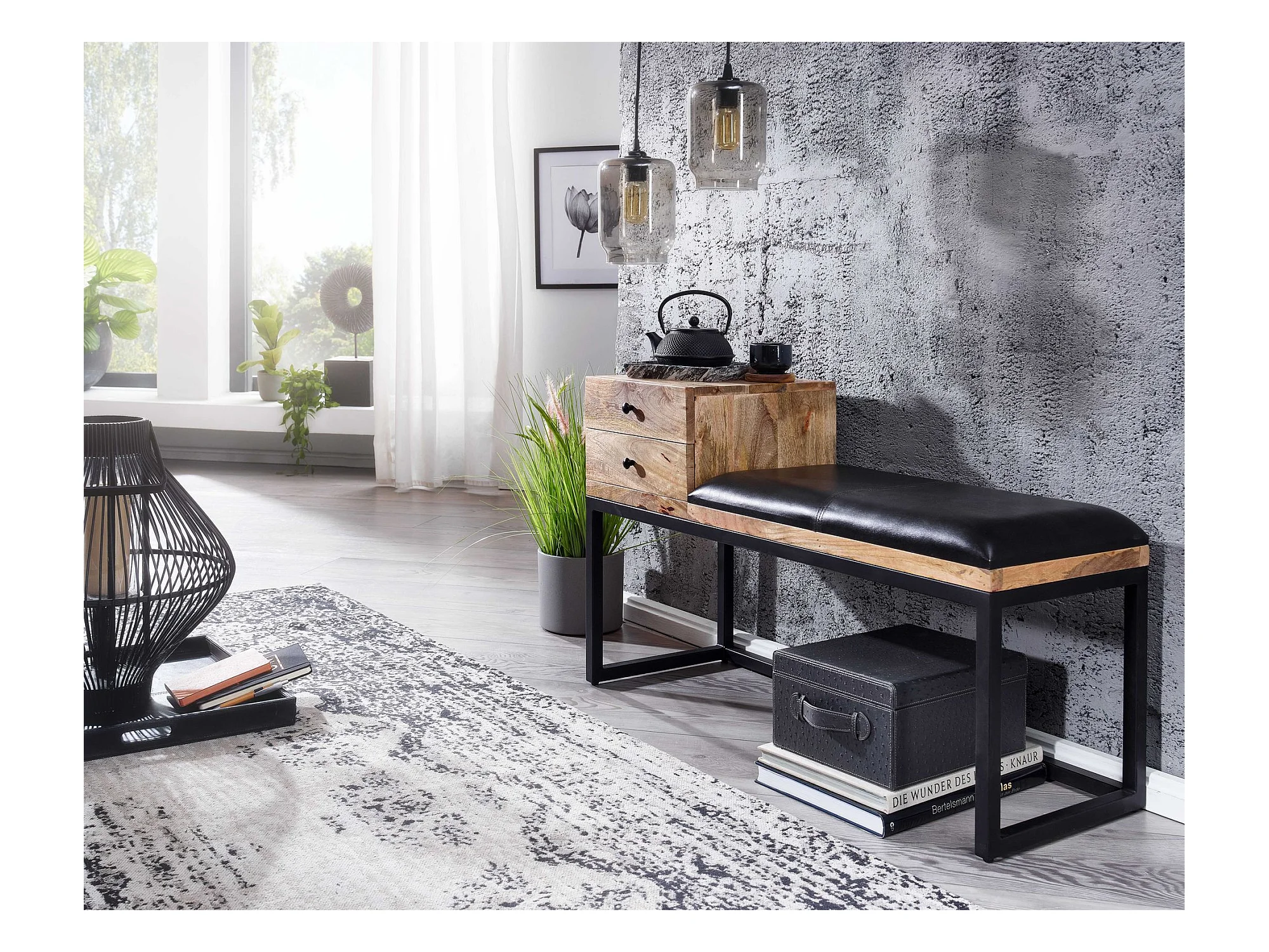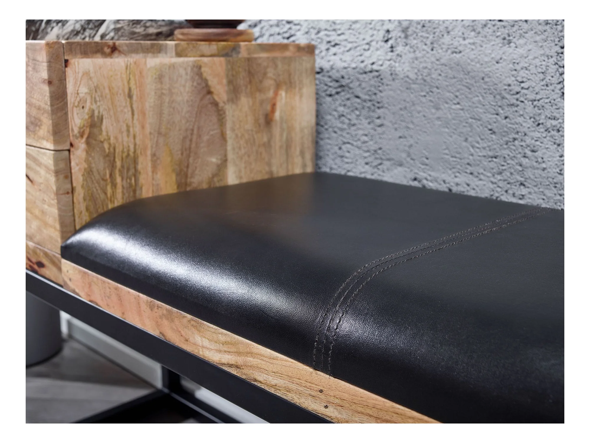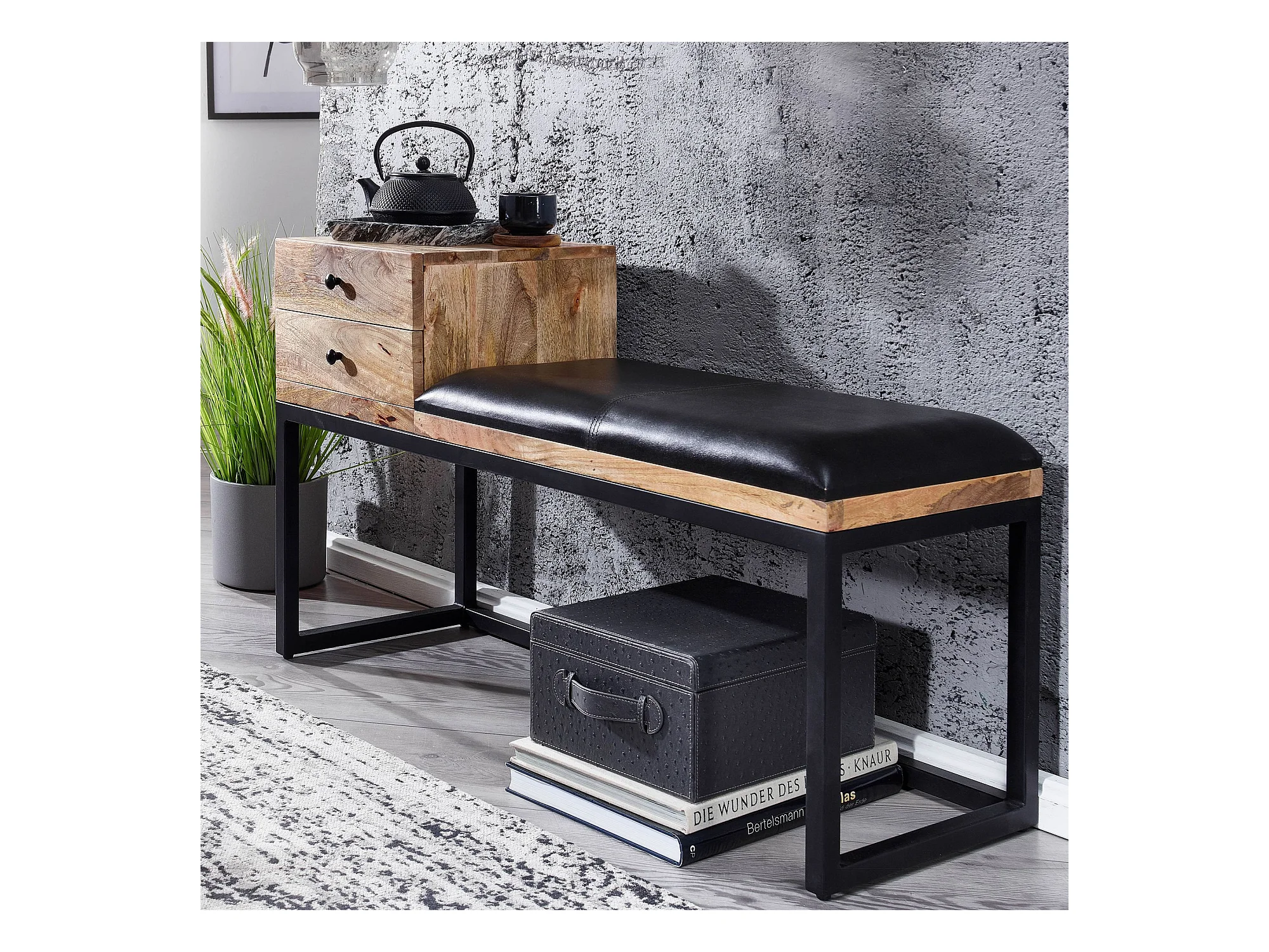 Sitzbank Flurbank Echtleder Holz Massiv 100 cm Polsterbank Stauraum Bank