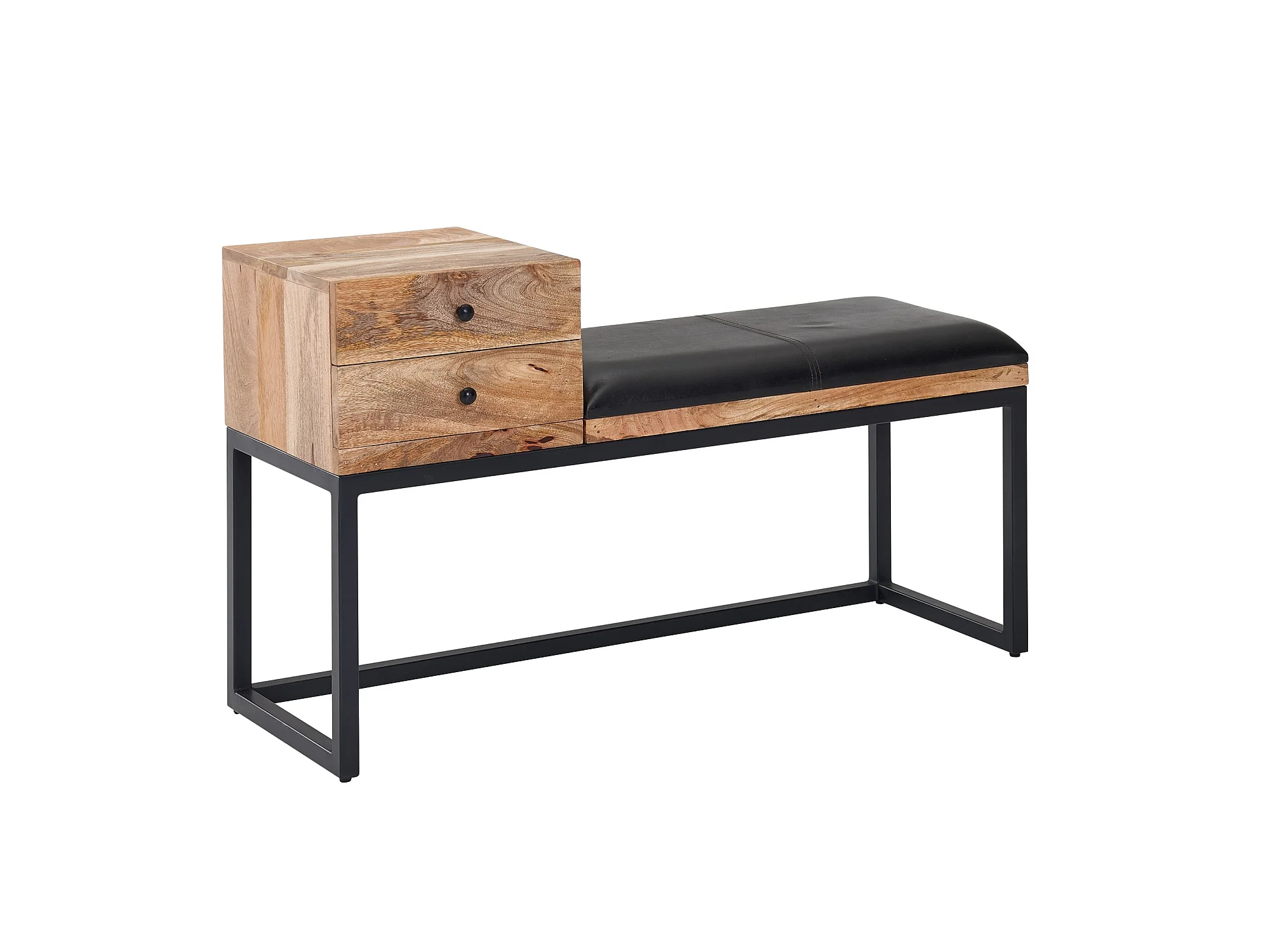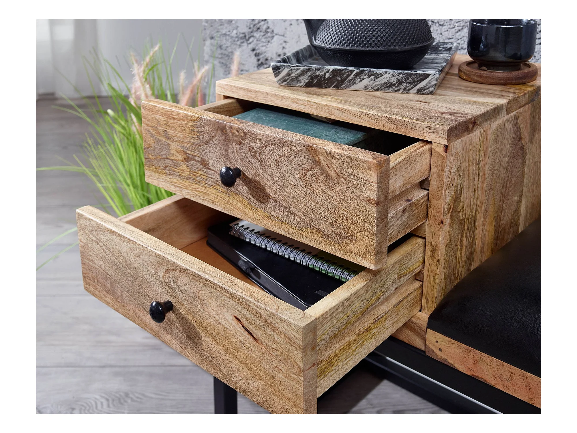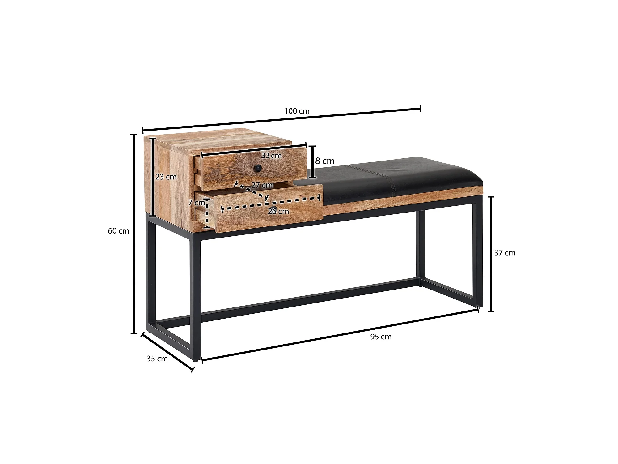 Sitzbank Flurbank Echtleder Holz Massiv 100 cm Polsterbank Stauraum Bank