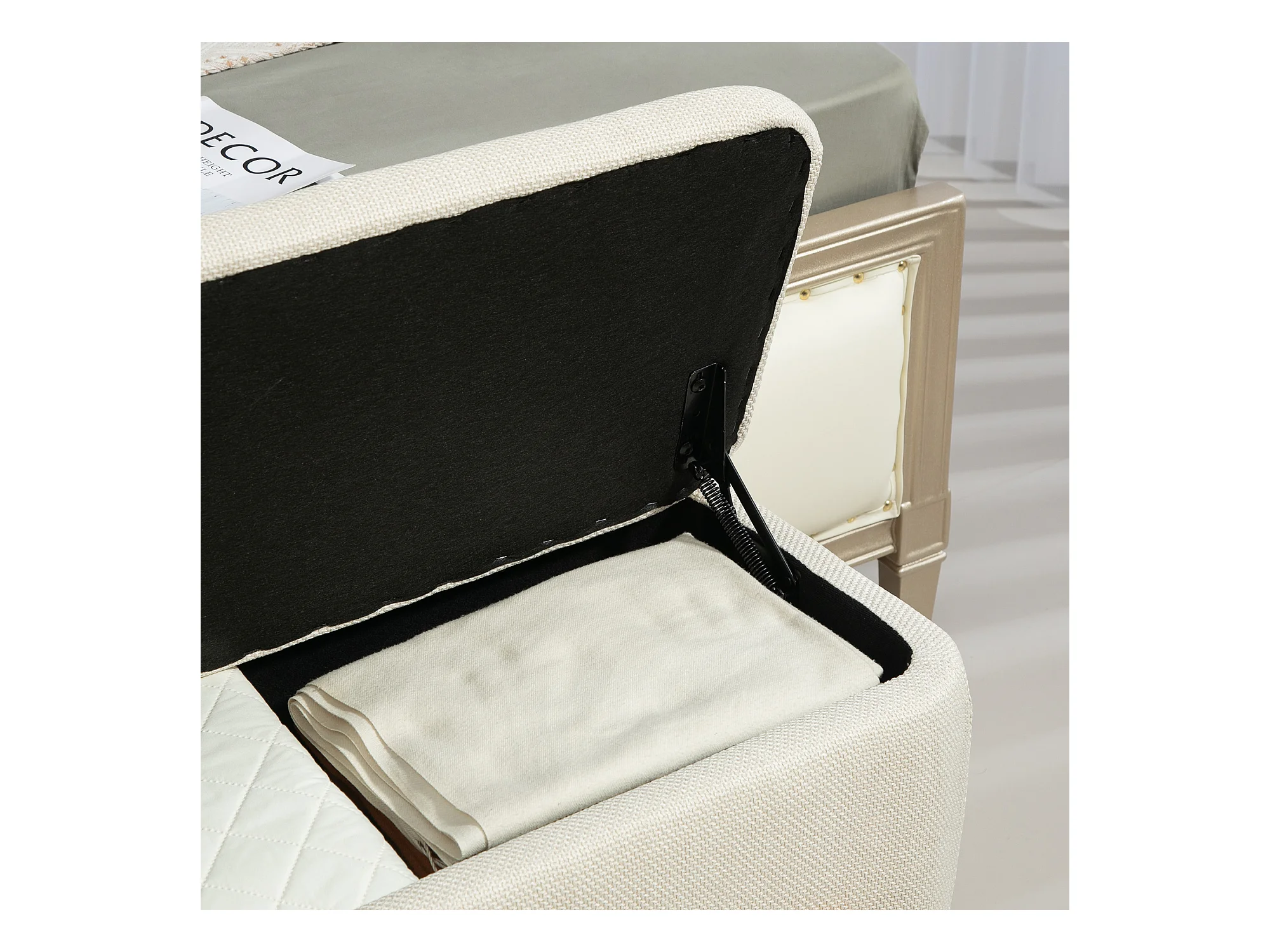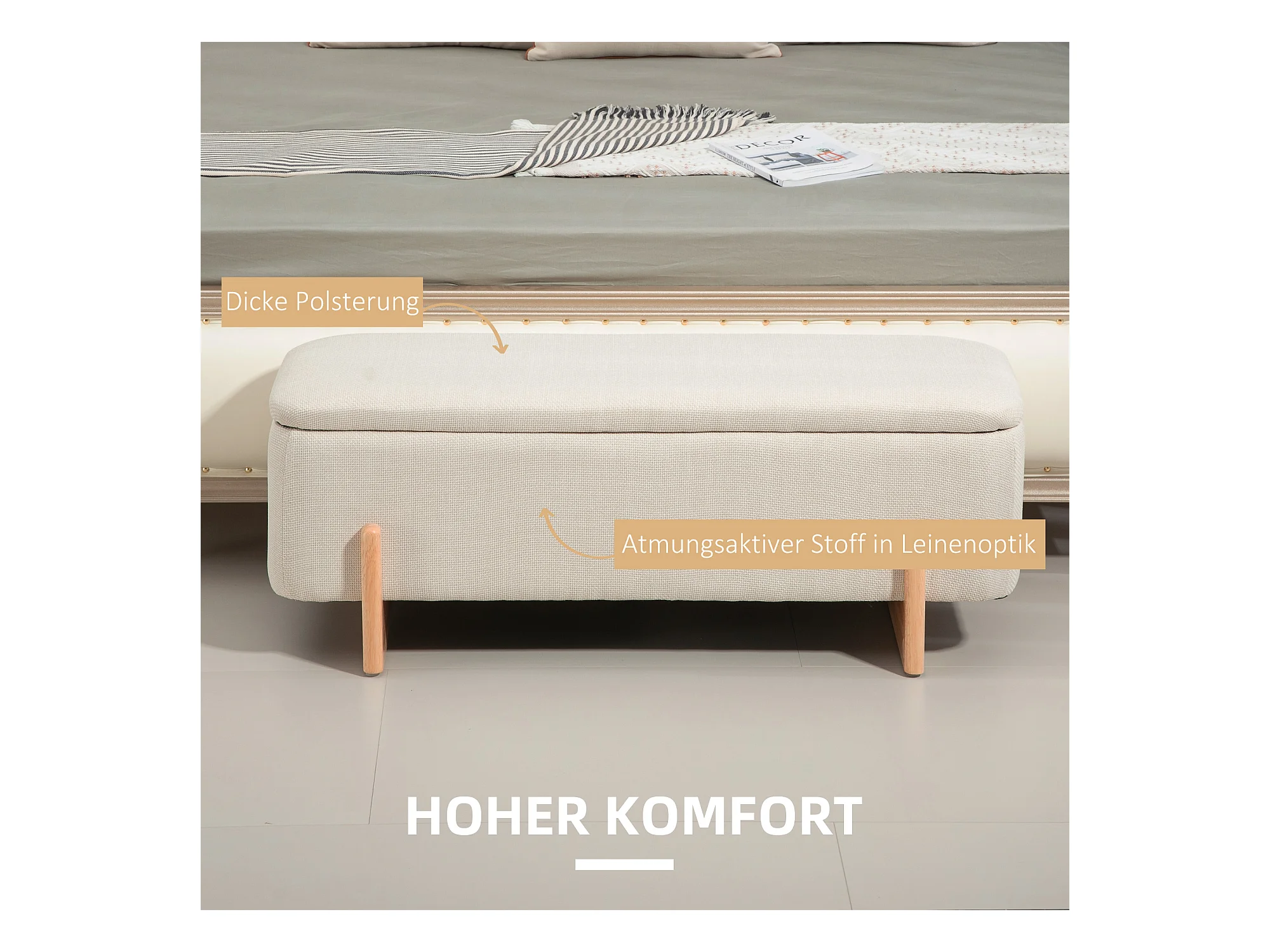 Sitzbank mit Stauraum, Polsterbank mit Leinenoptik,Bettbank mit Sicherheitsscharniere