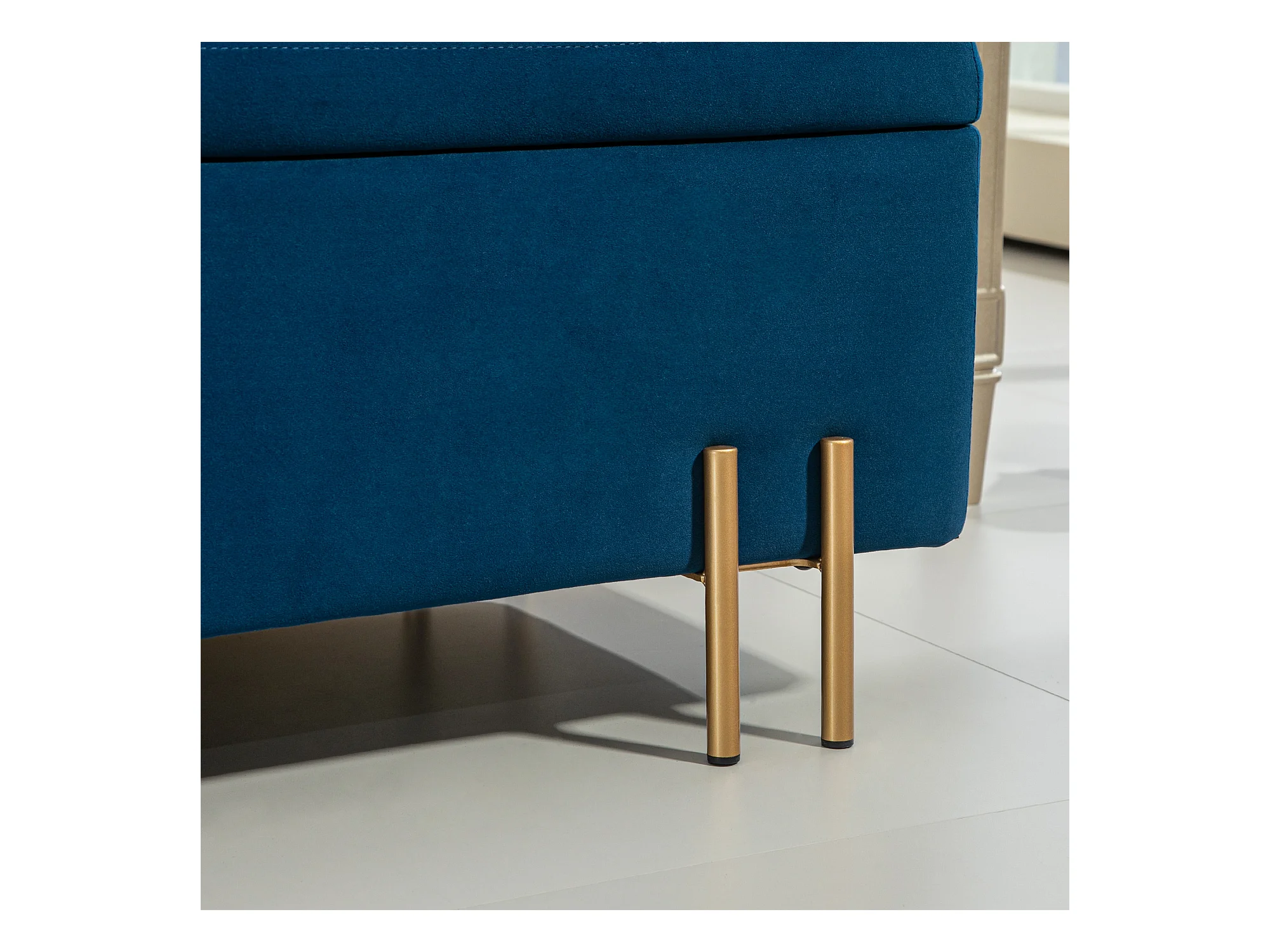 Sitzbank, Polsterbank mit Stauraum, Truhenbank, Stoff, Metall, Gummiholz