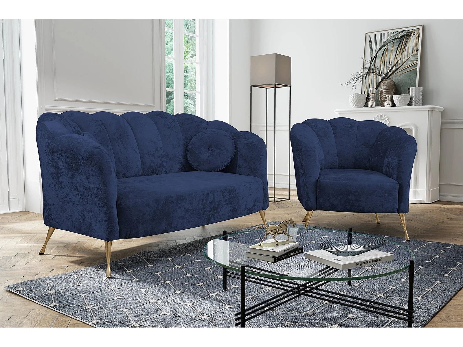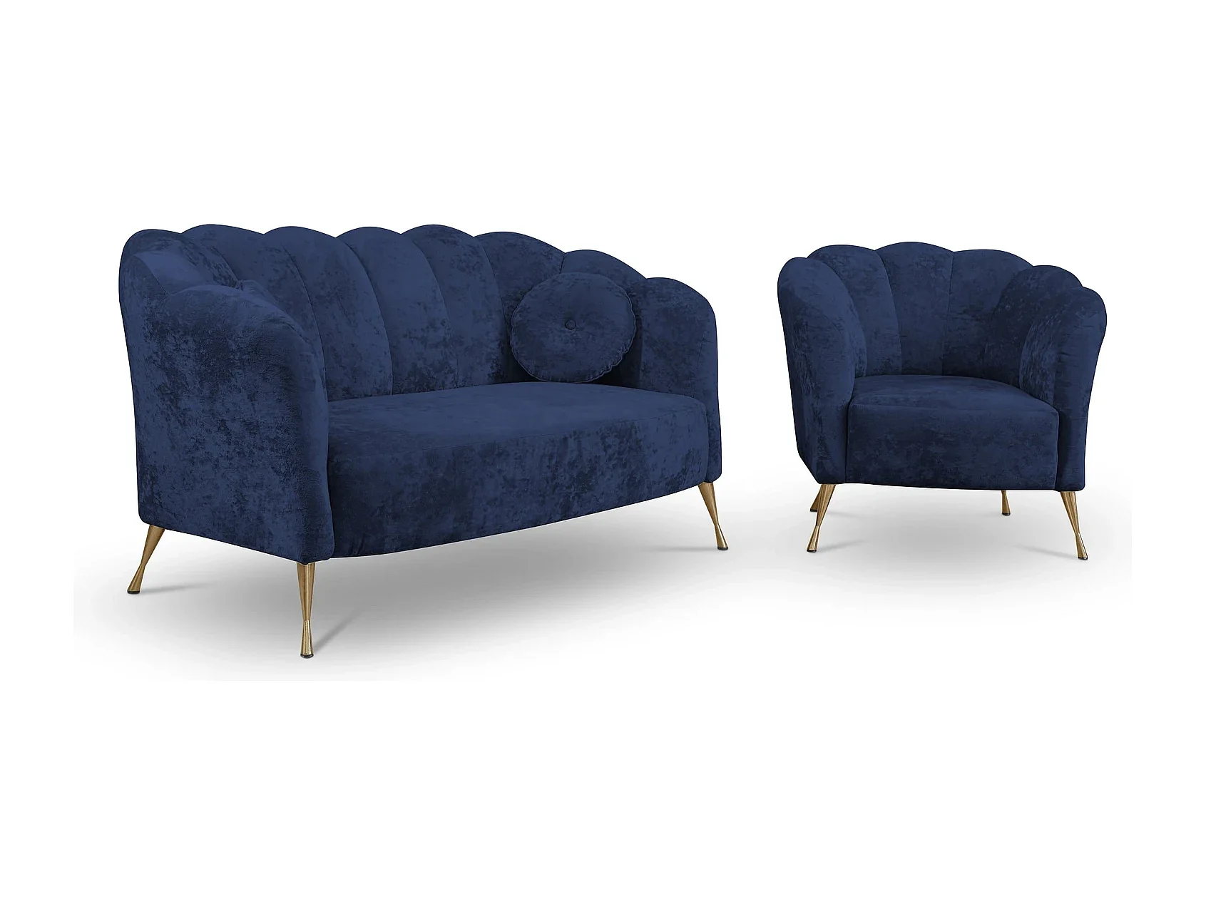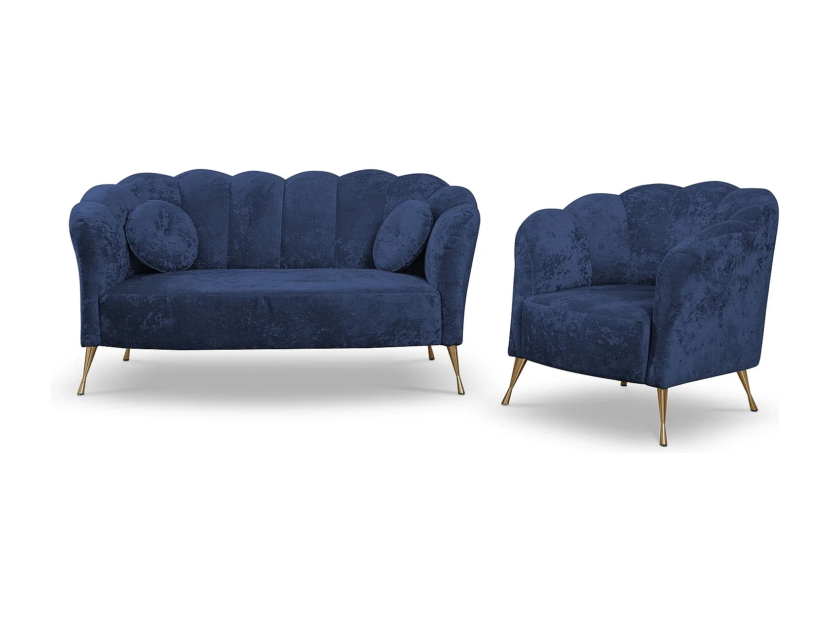Sitzgarnitur 2+1 Adria - samt marineblau goldene füße