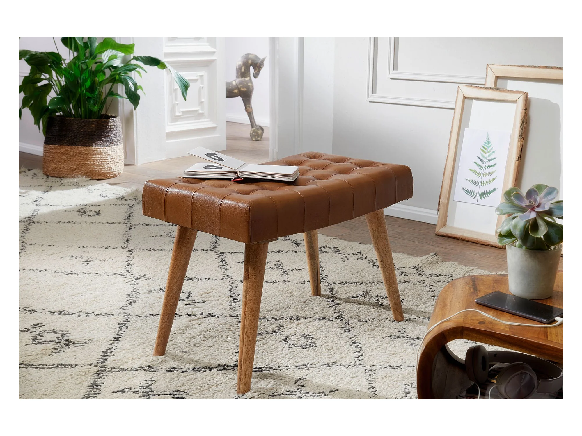 Sitzhocker 67x47x39 cm Massivholz Lederhocker Fußhocker Leder Hocker