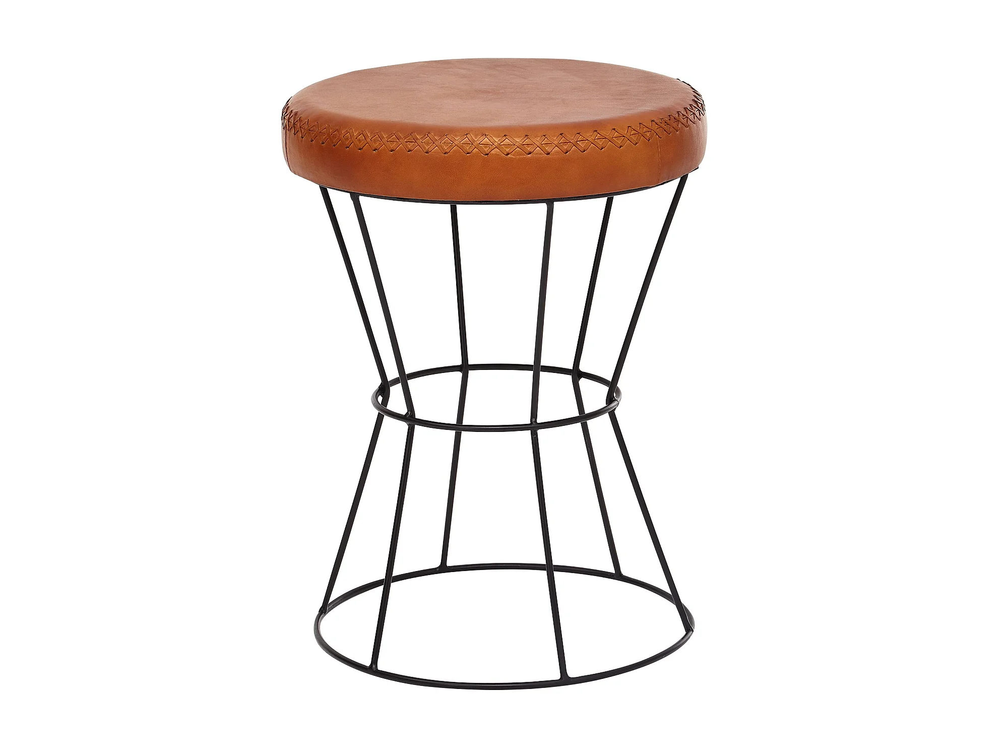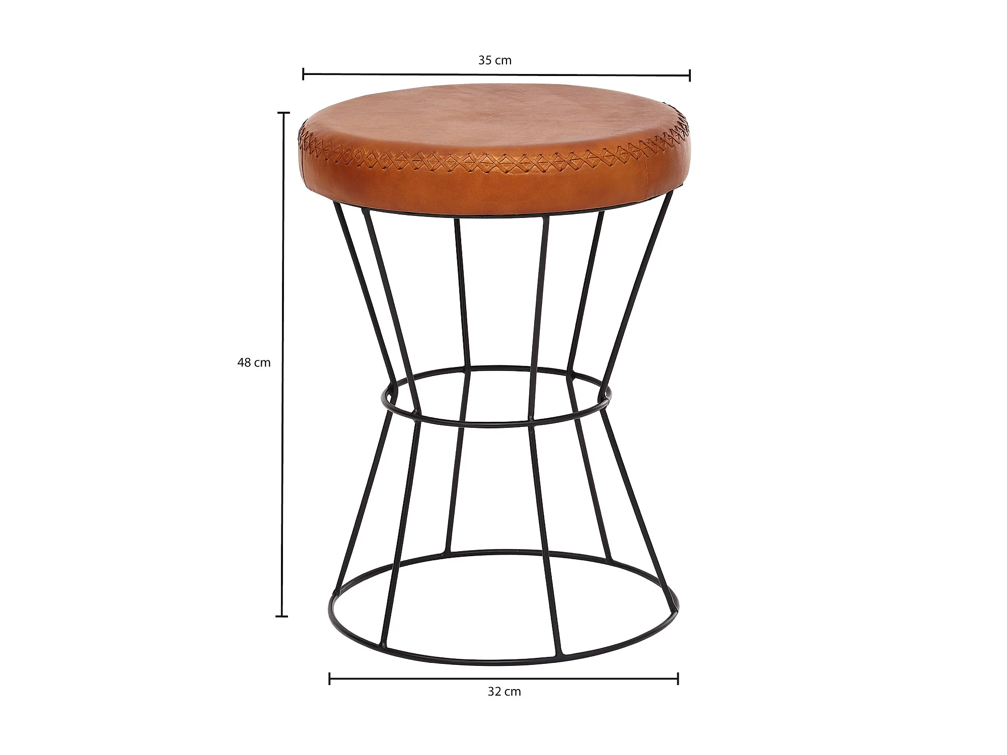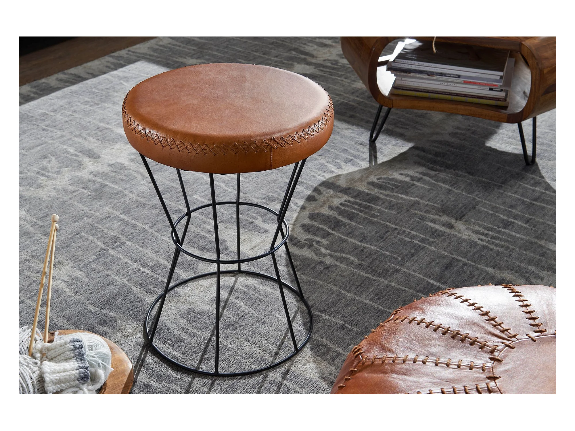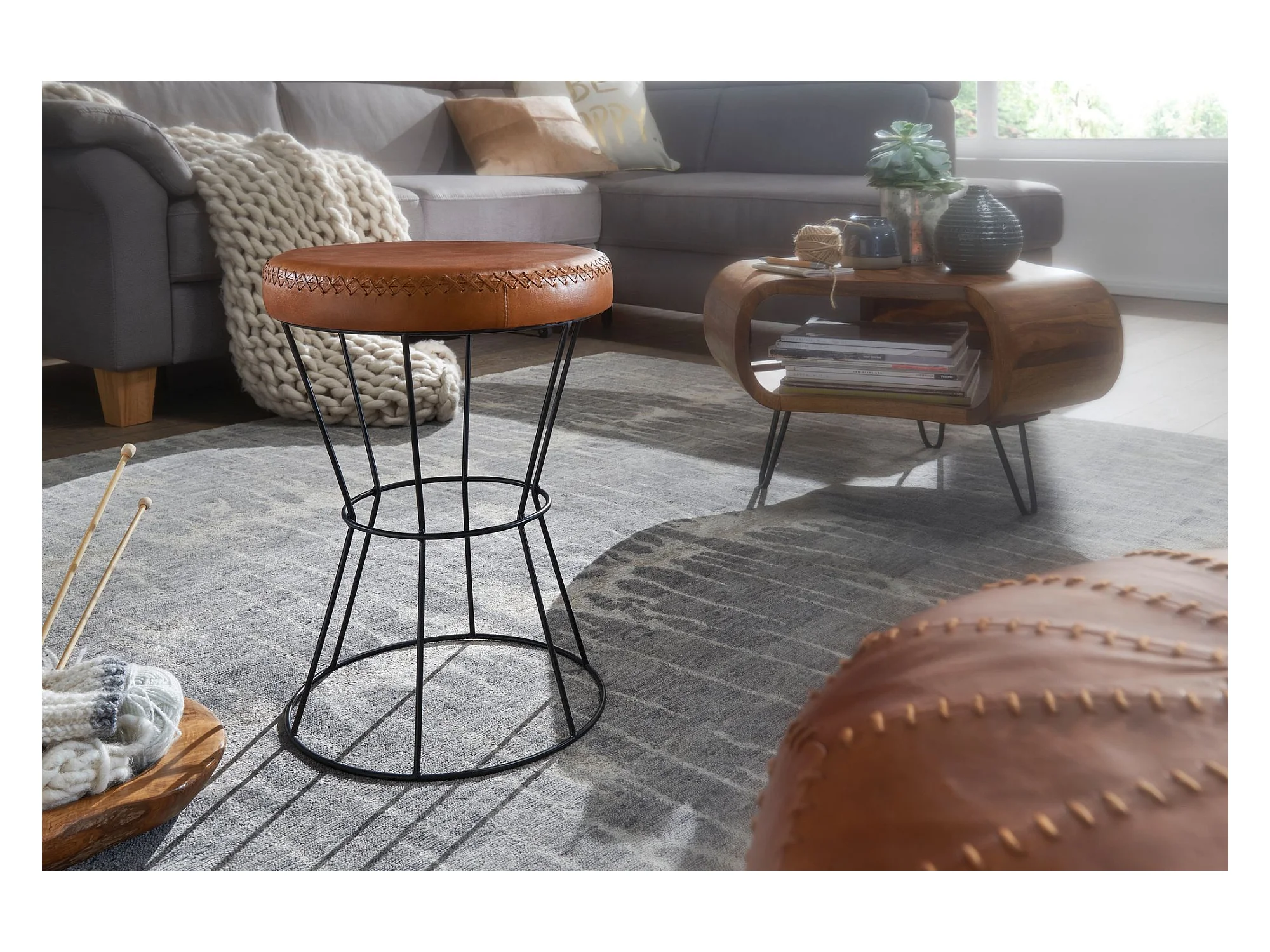 Sitzhocker Braun 35x48 cm Lederhocker Modern Echtleder Hocker Rund