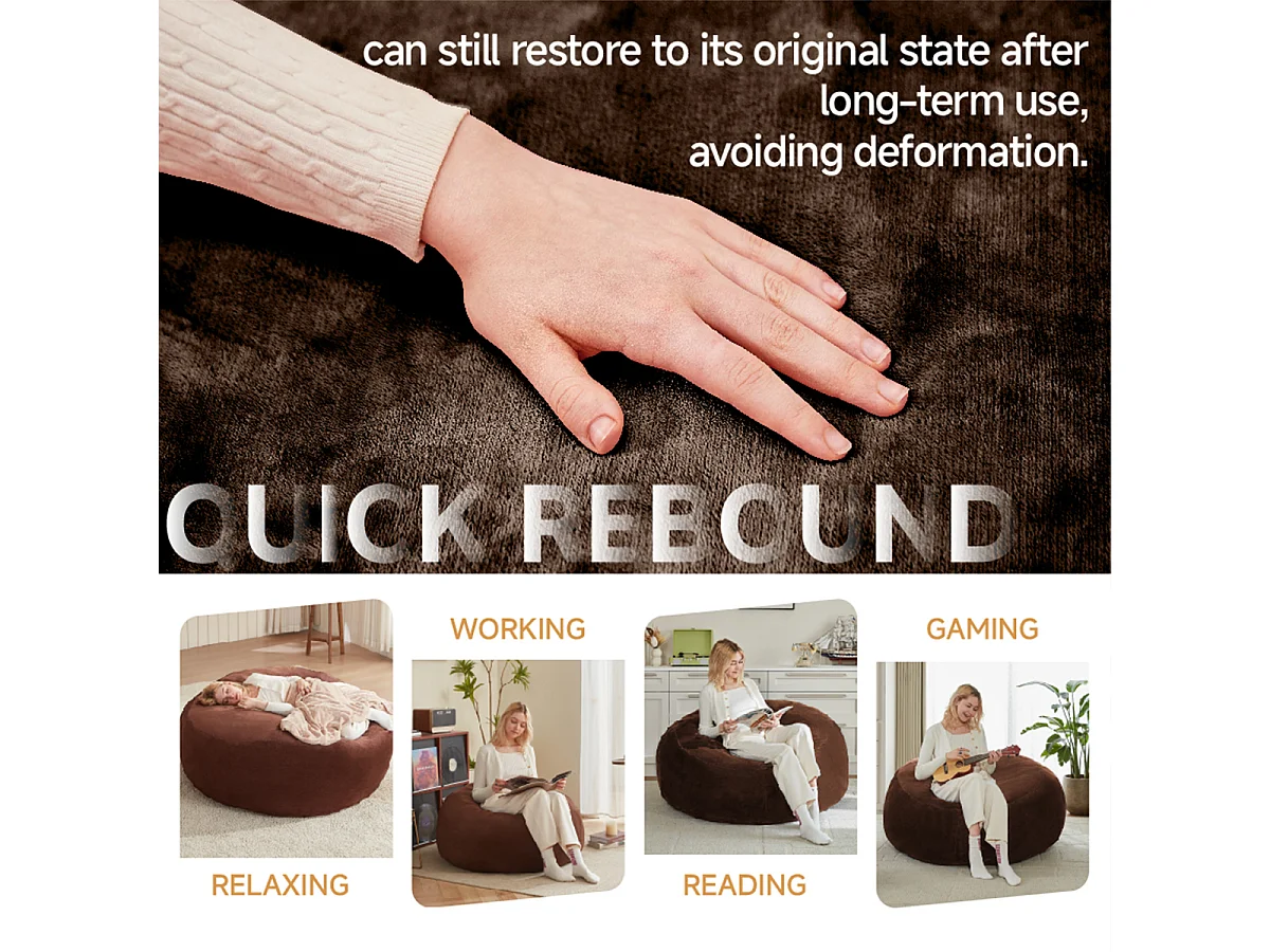 Sitzsack Weicher und Bequemer Sitzsackstuhl Sofa Lesestuhl für Schlafzimmer, Balkone und andere Orte 5FT Braun