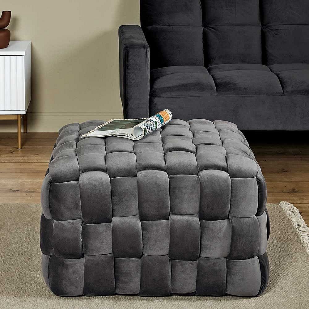 Sitzw�rfel Couchhocker in Grau aus Samt