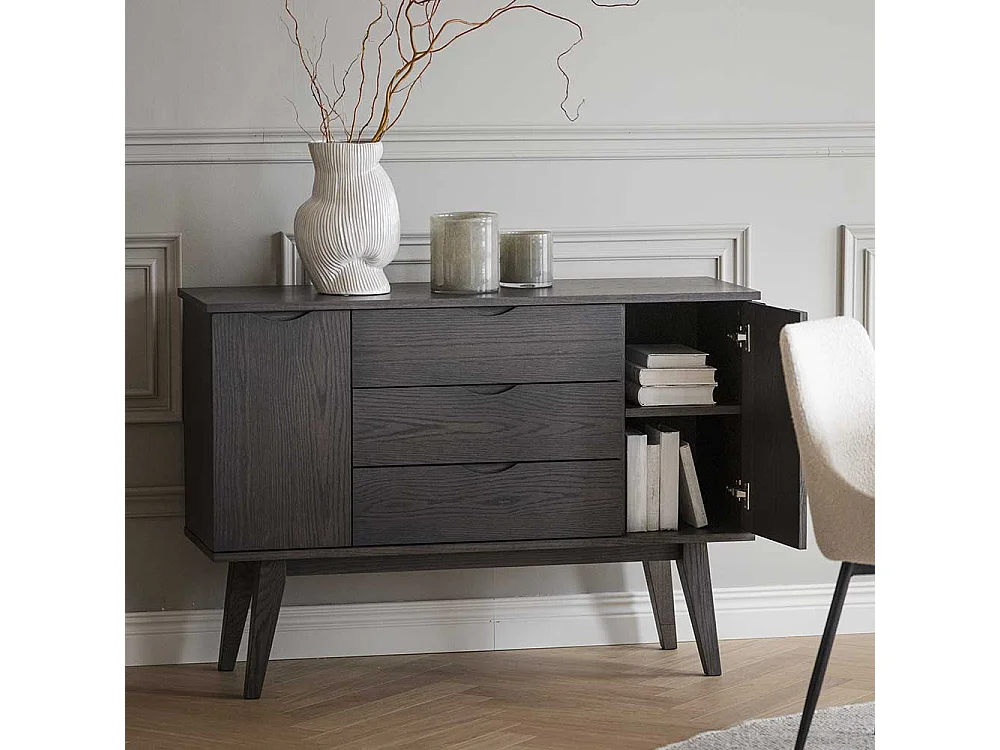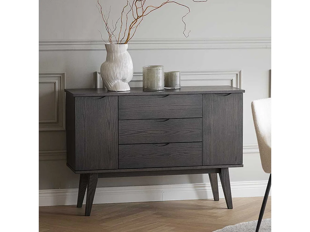 Skandi Esszimmer Sideboard in Eiche Dunkelbraun drei Schubladen und zwei Türen