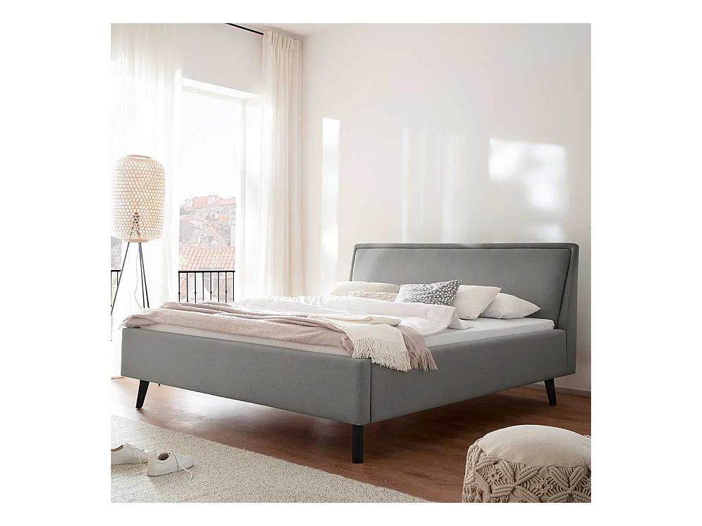 Skandi Polsterbett in Hellgrau 105 cm hohes Kopfteil
