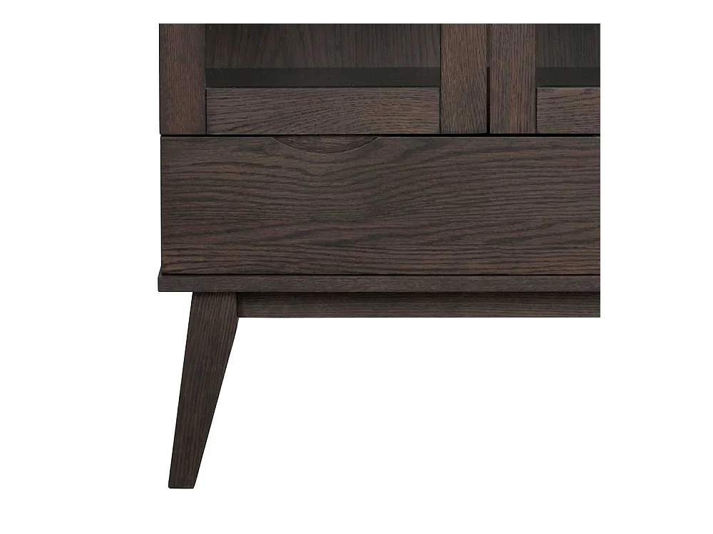Skandi Vitrine in Eiche Dunkelbraun zwei Glastüren und einer Schublade