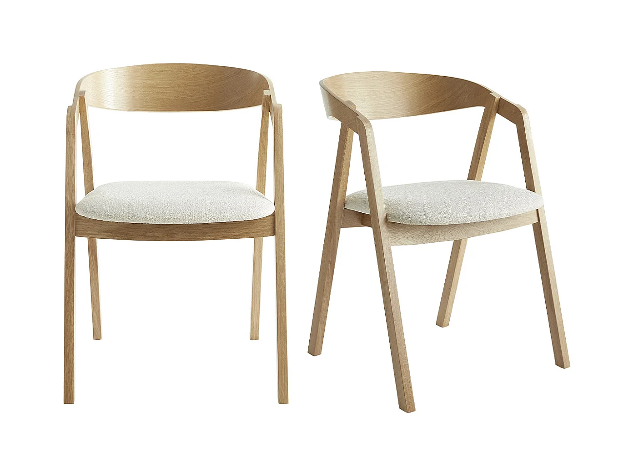 Skandinavische Stühle aus hellem Eichenholz und Stoff mit Bouclé-Wolleffekt in Ecru (2er-Set) LOVA