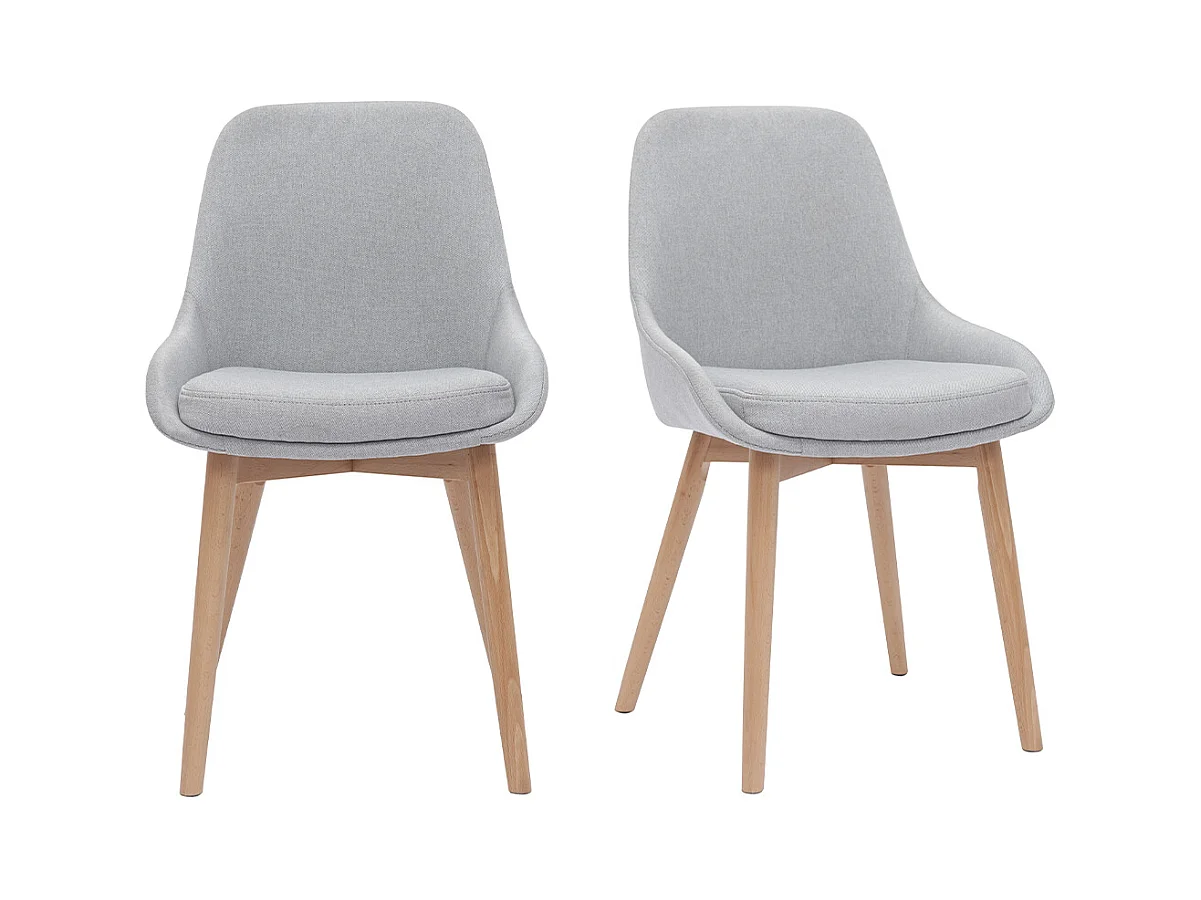 Skandinavische Stühle mit hellgrauem Stoff und massivem Buchenholz (2er-Set) HOLO