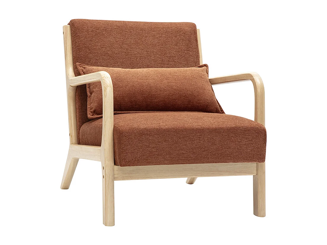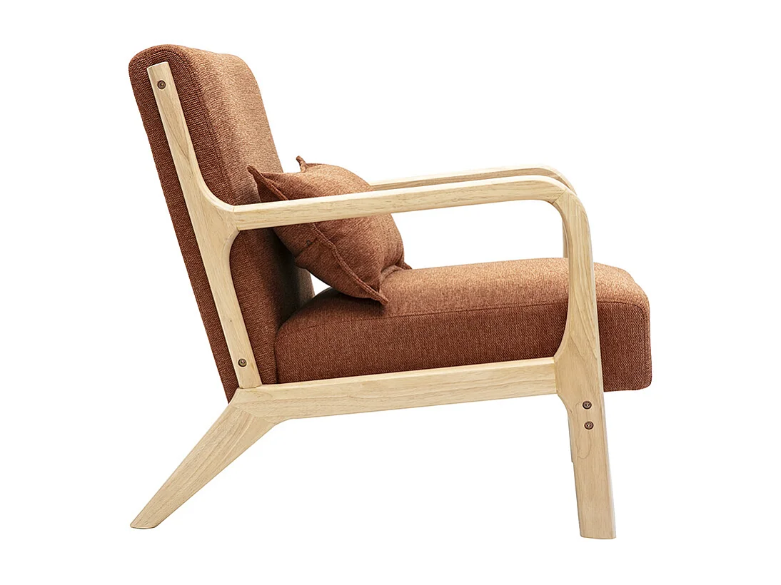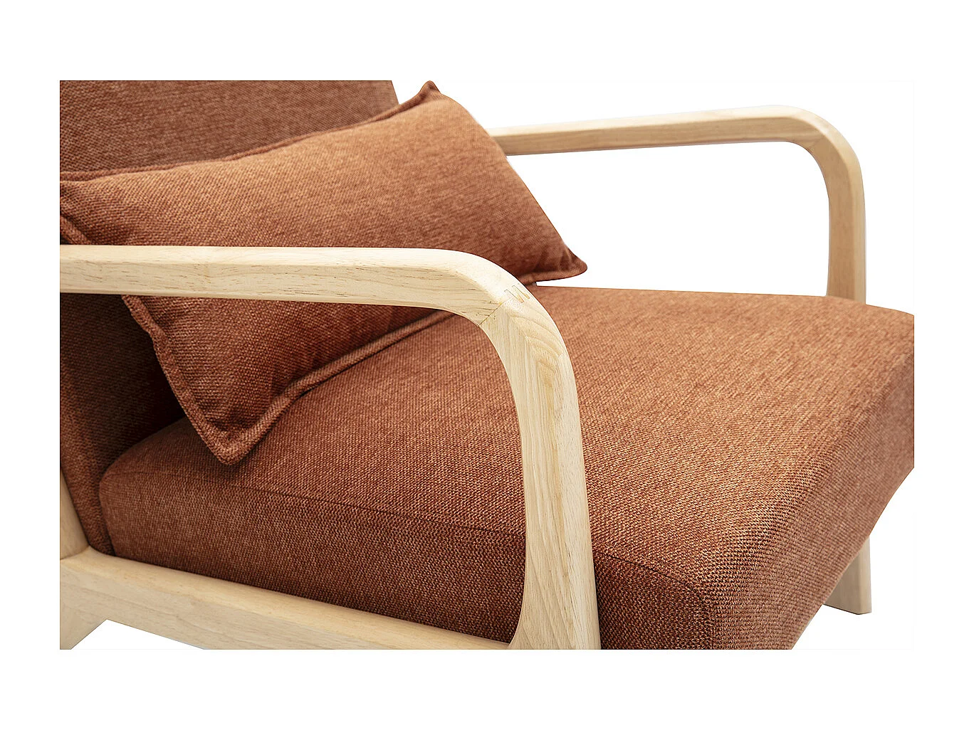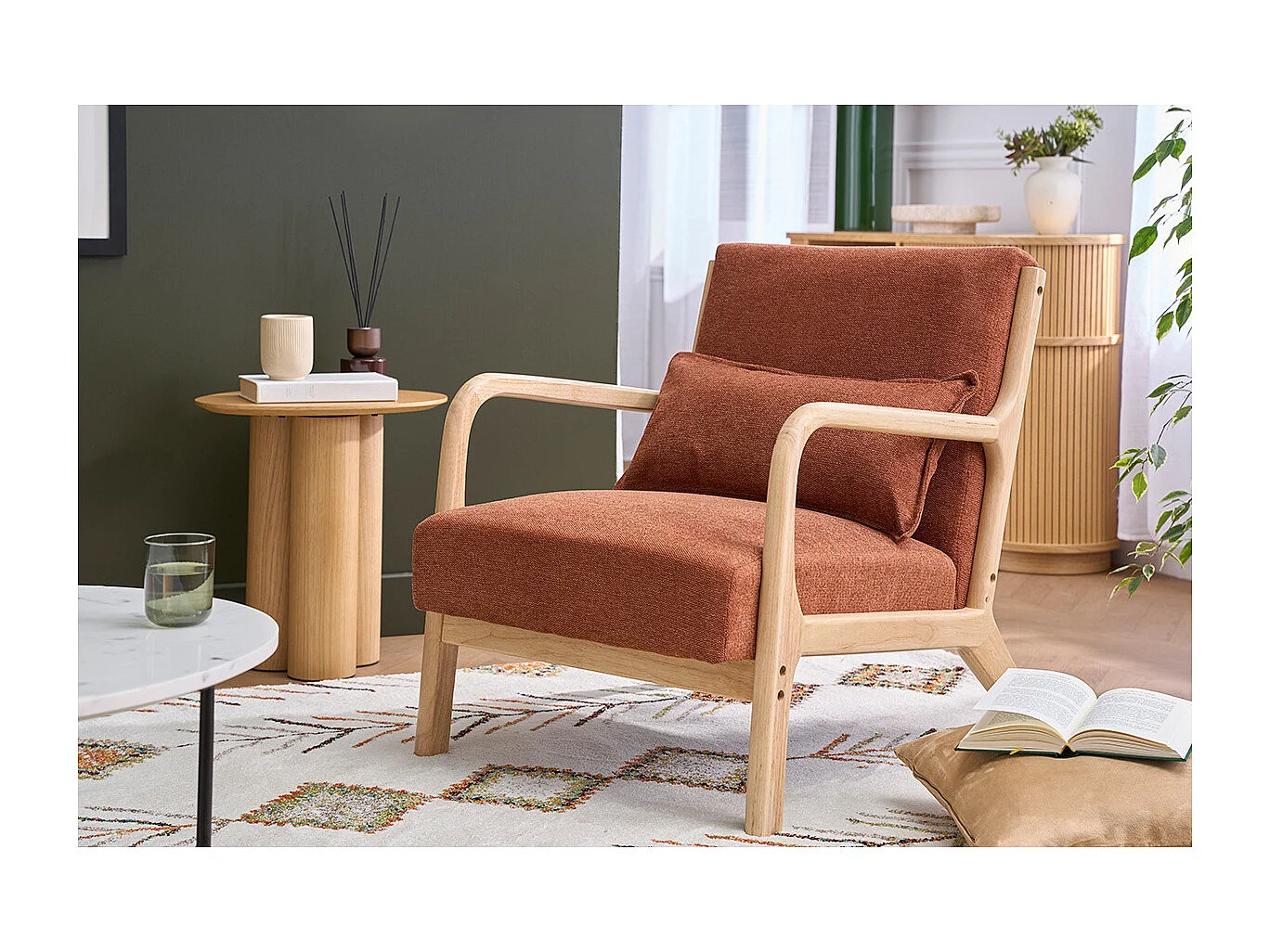 Skandinavischer Sessel aus rostbraunem Stoff mit Samteffekt und hellem Massivholz DERRY