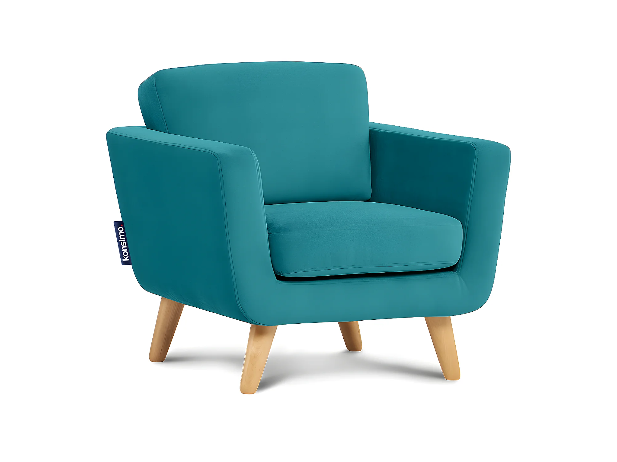 Skandinavischer Sessel - Massivholz-Beine - blau - TAGIO