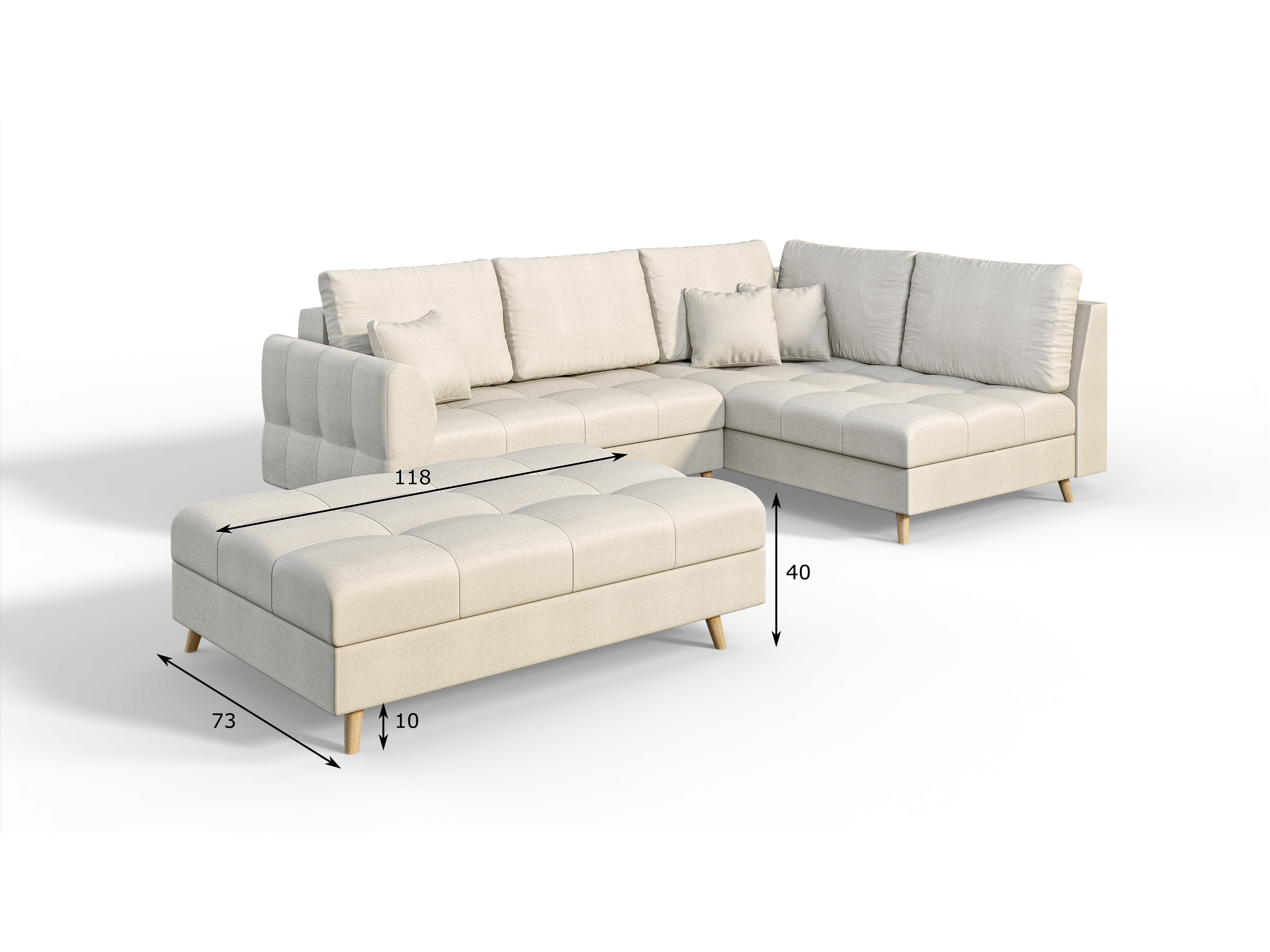 Skandinavisches Ecksofa Sophia mit Hocker