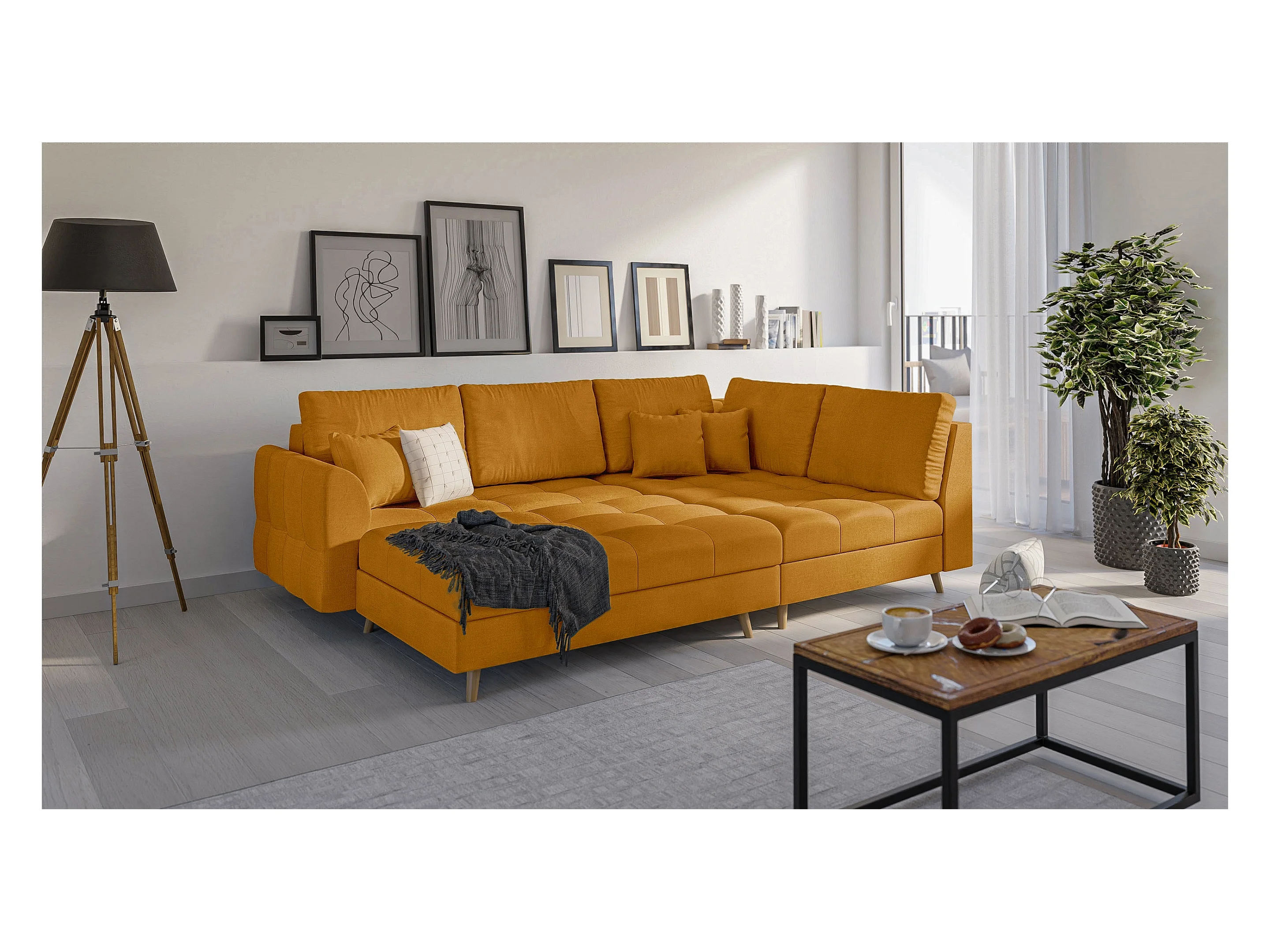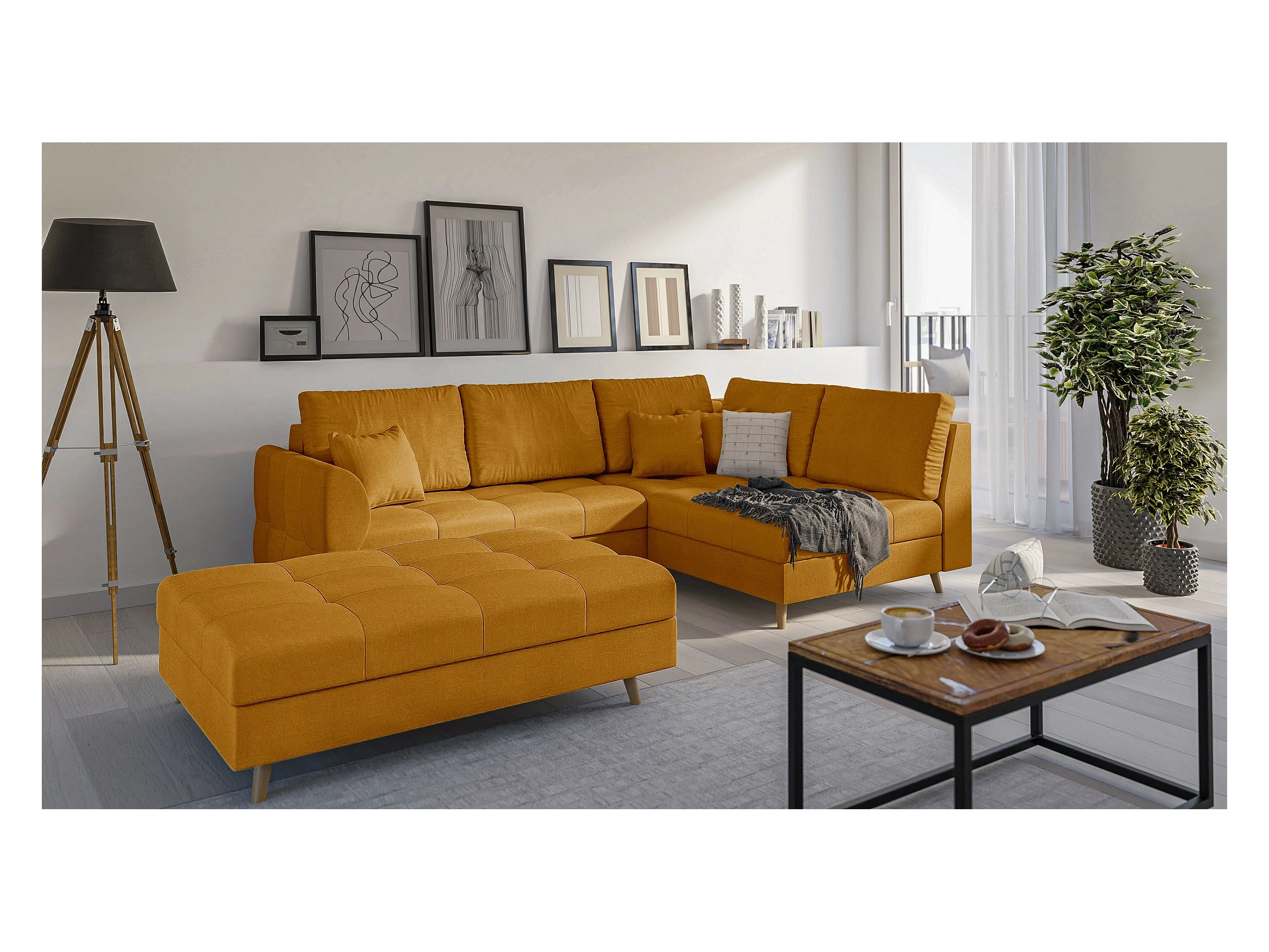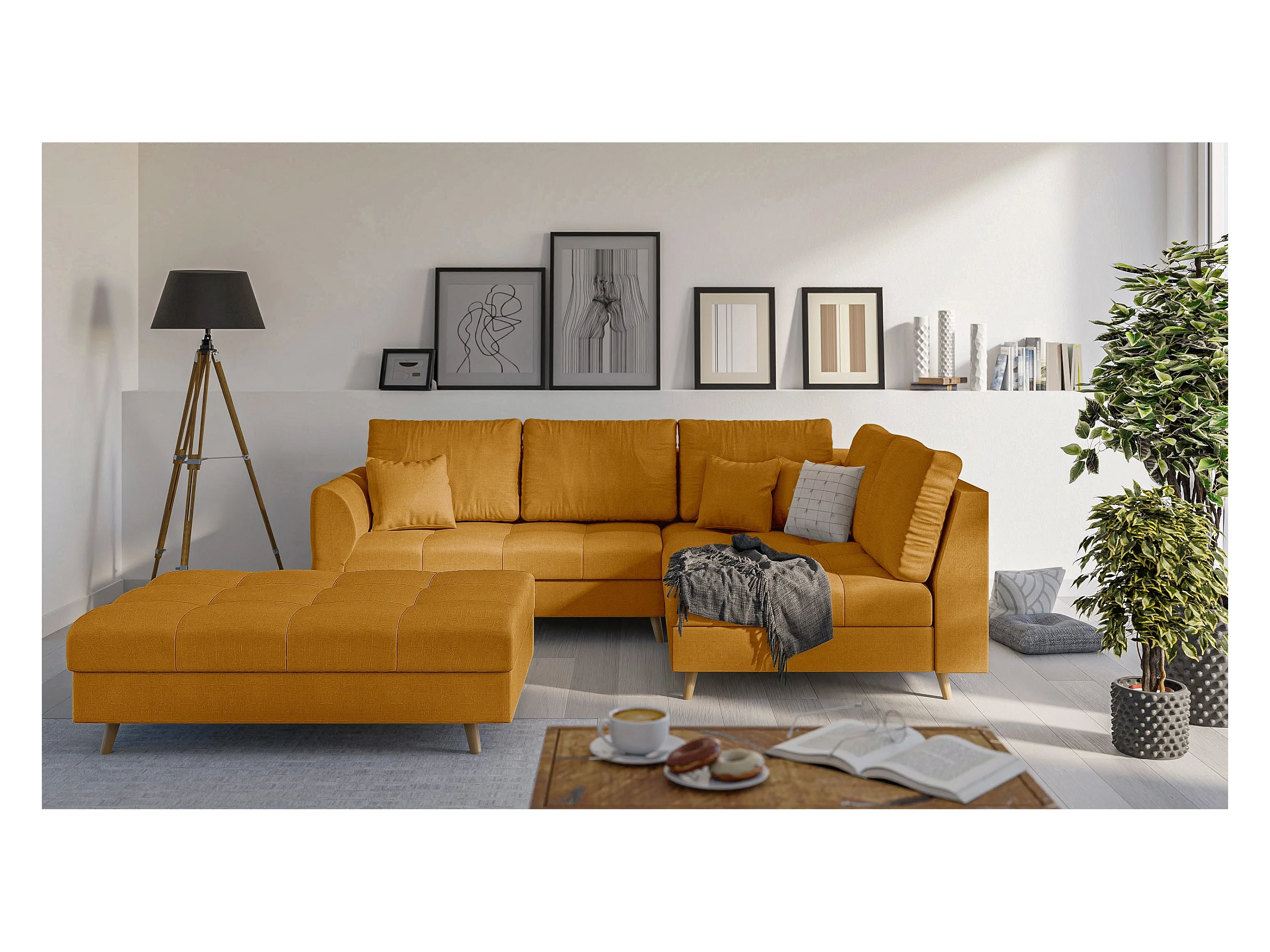 Skandinavisches Ecksofa Sophia mit Hocker