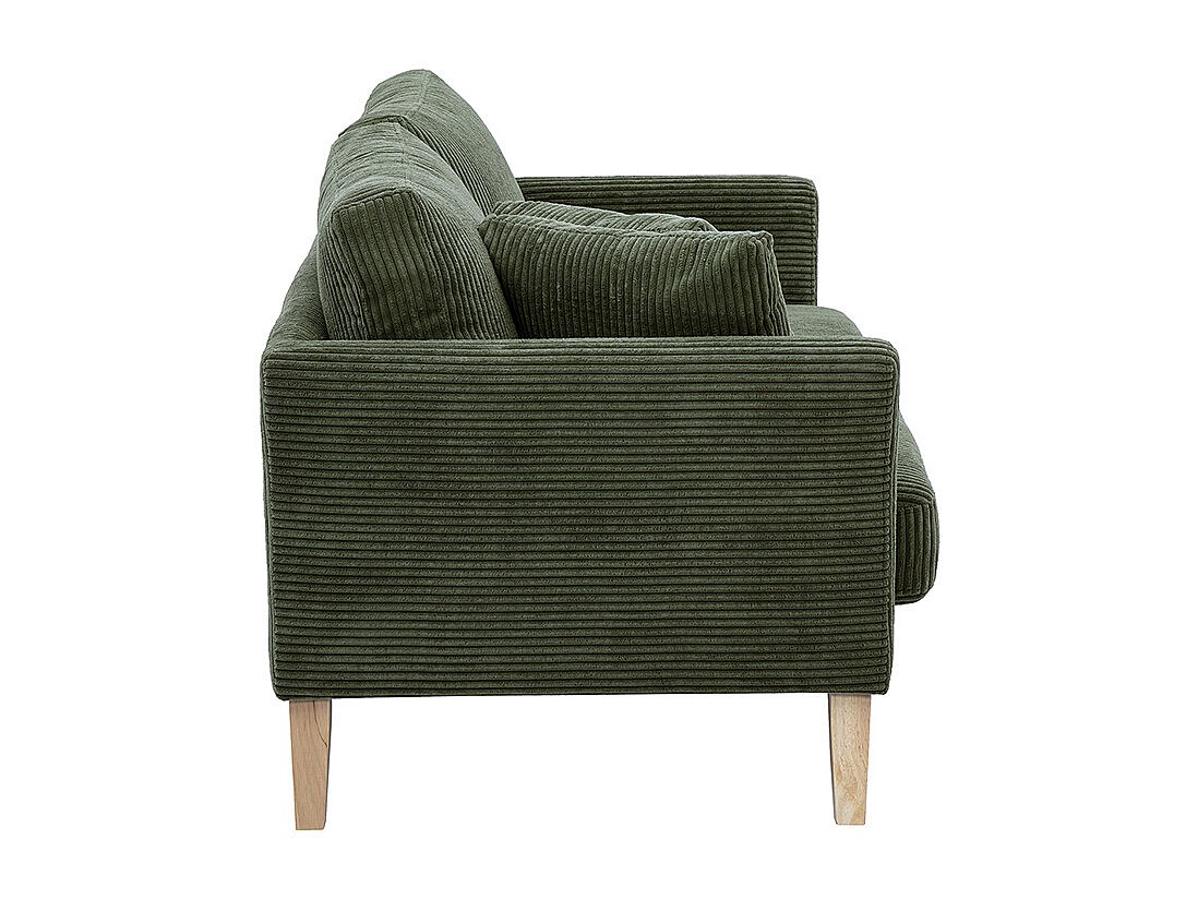 Skandinavisches Schlafsofa für 2 Personen in samtigem Rippenvelours in Khakigrün und hellem Holz OSLO