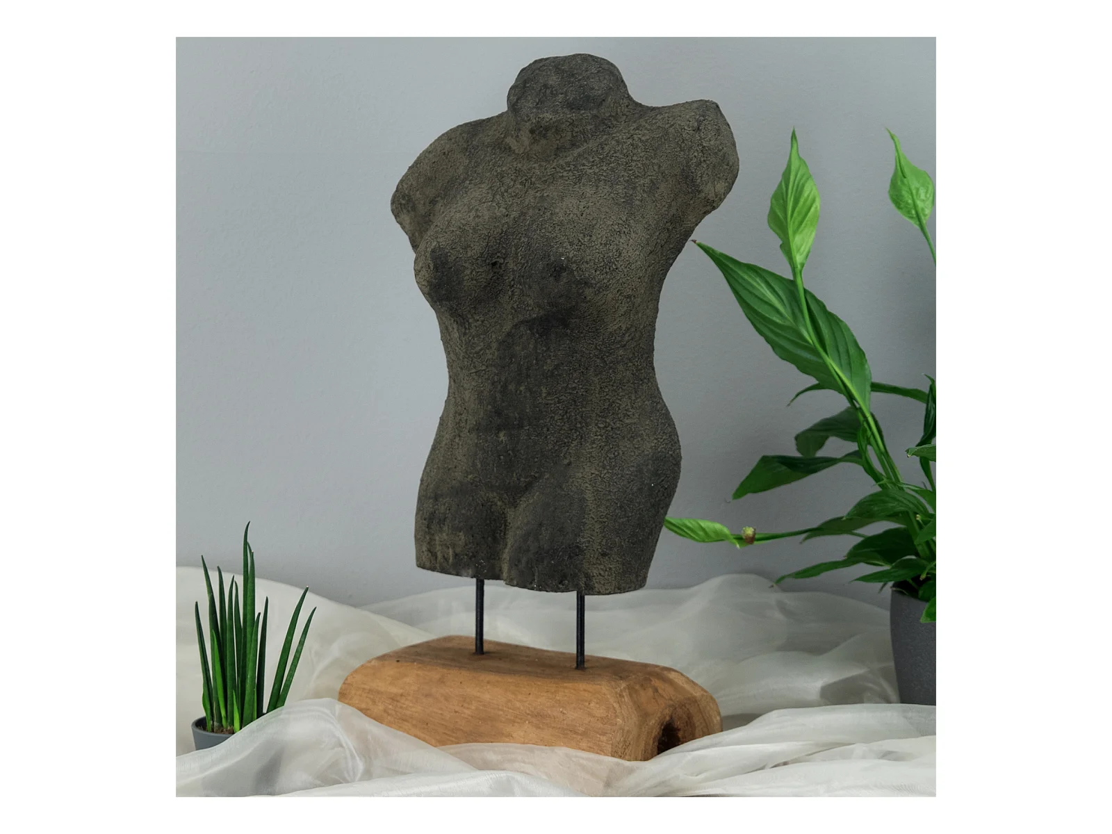 SKULPTUR Femme 54cm, Beton auf Holzsockel grau