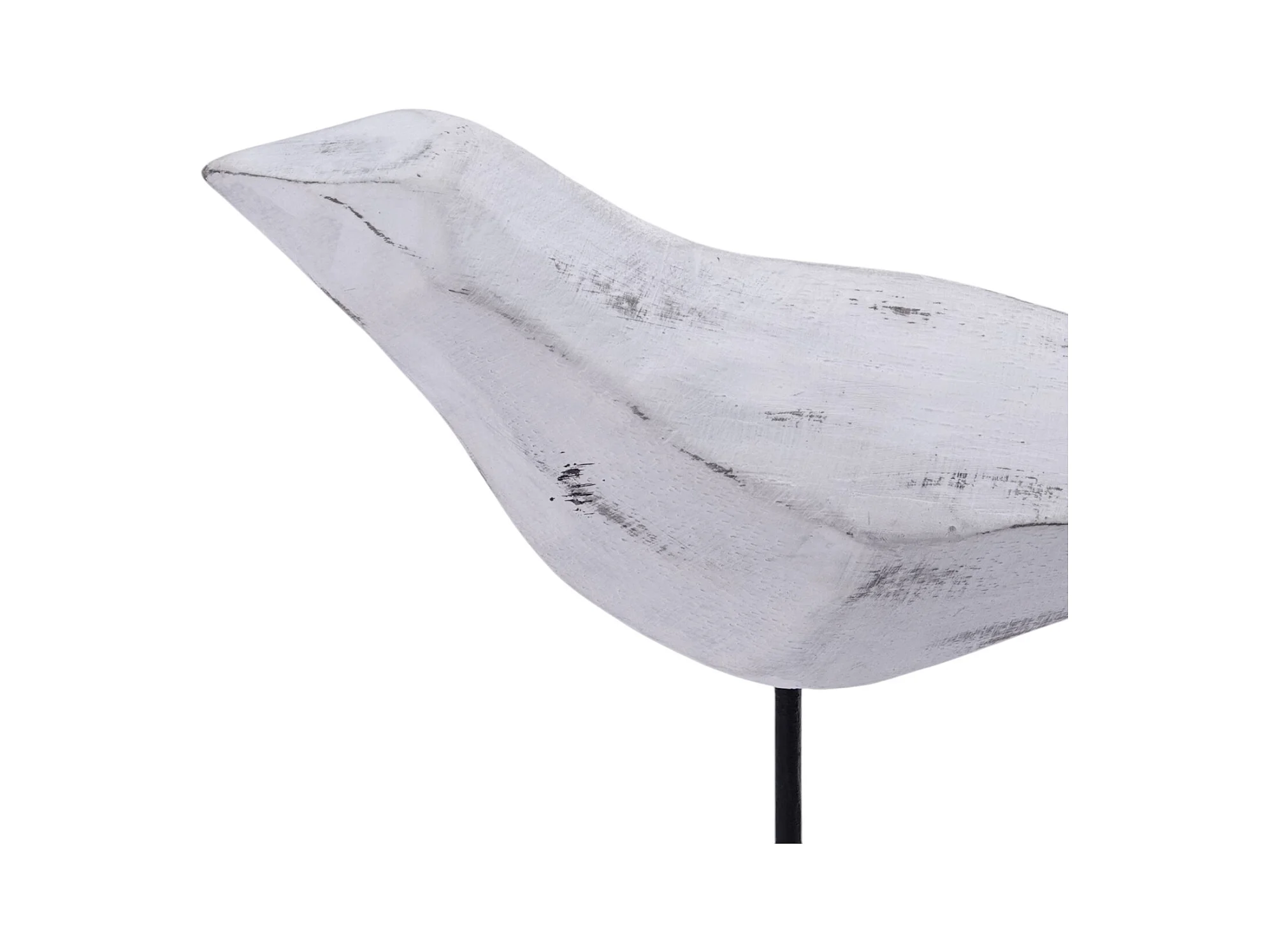 SKULPTUR Vogel Kikki 65 Mangoholz-Sockel weiß-natur