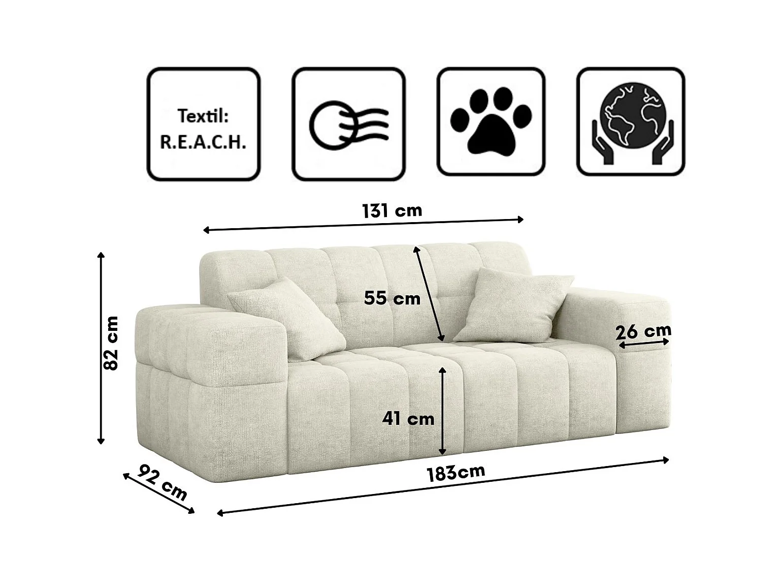 Sofa 2 sitzer Couch serie NIMES stilvol Stoff Perfect Harmony Creme