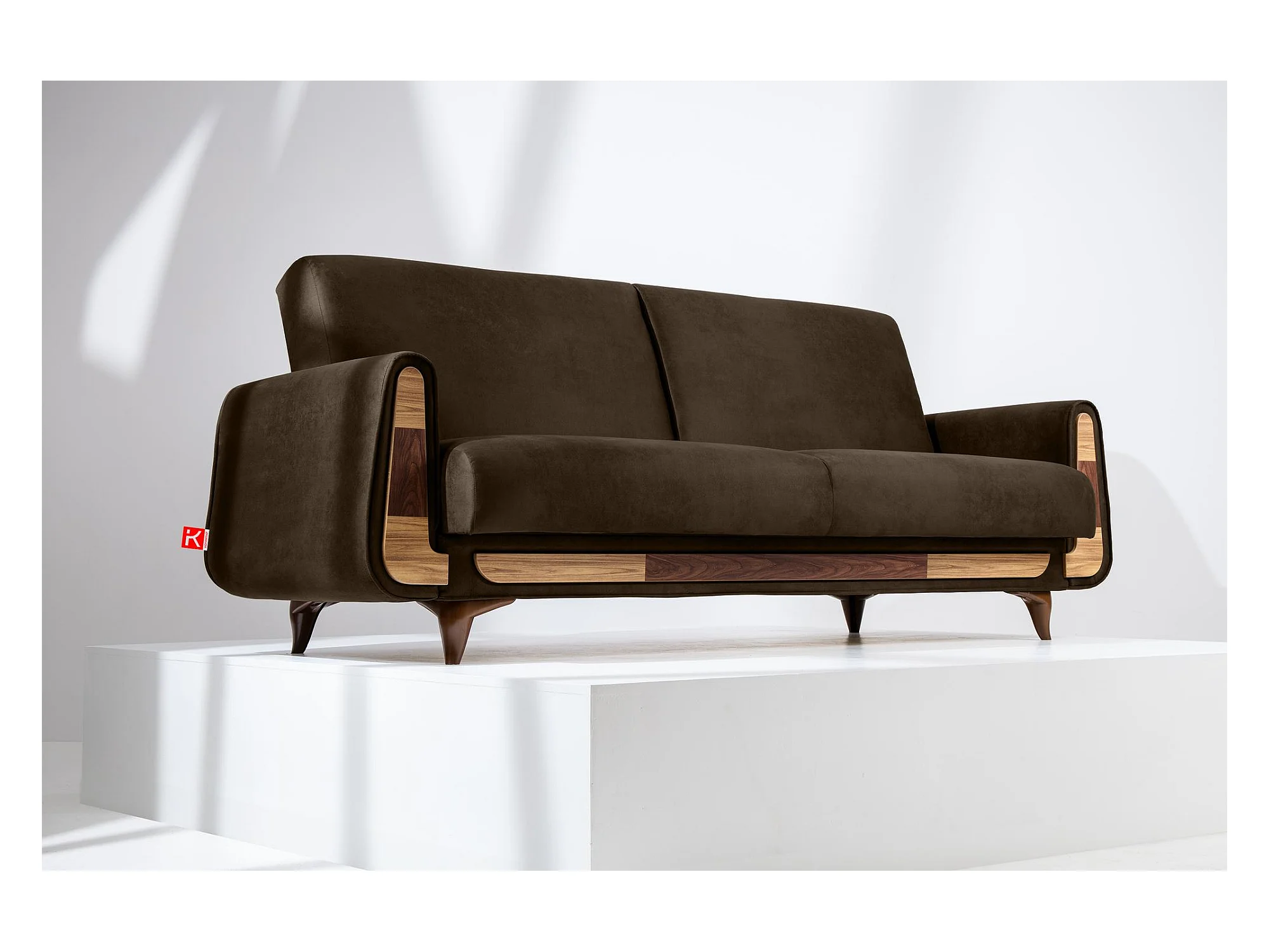 Schlafsofa GUSTAVO Schlafsofa - 3-Sitzer - Wildleder Stoff - Braun