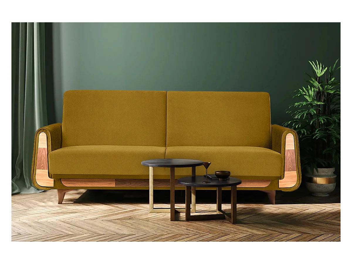 Schlafsofa GUSTAVO Schlafsofa - 3-Sitzer - Velours-Stoff - Gelb