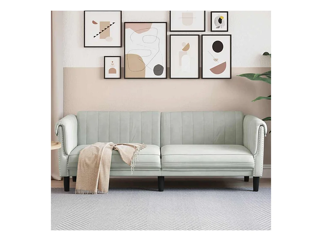Sofa 3-Sitzer Hellgrau Samt