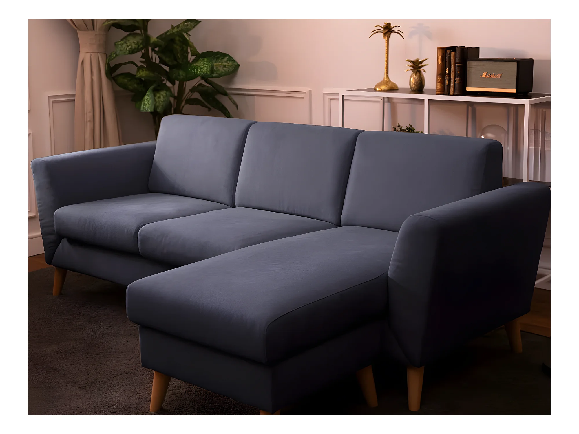 Sofa 3-sitziges wendbar Chaiselongue aus Polyester blauem