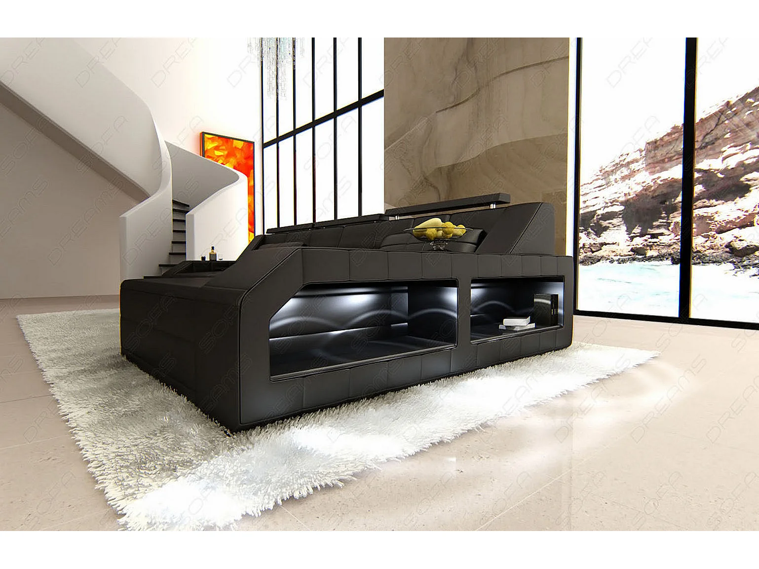 Ecksofa Arezzo Leder Ledermix Schwarz Rechts