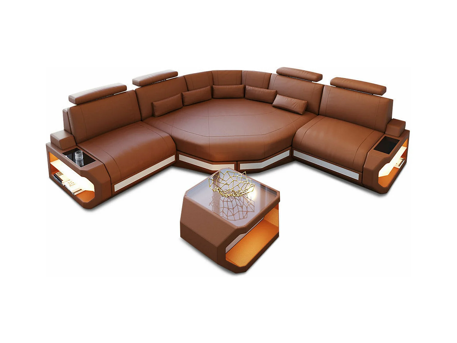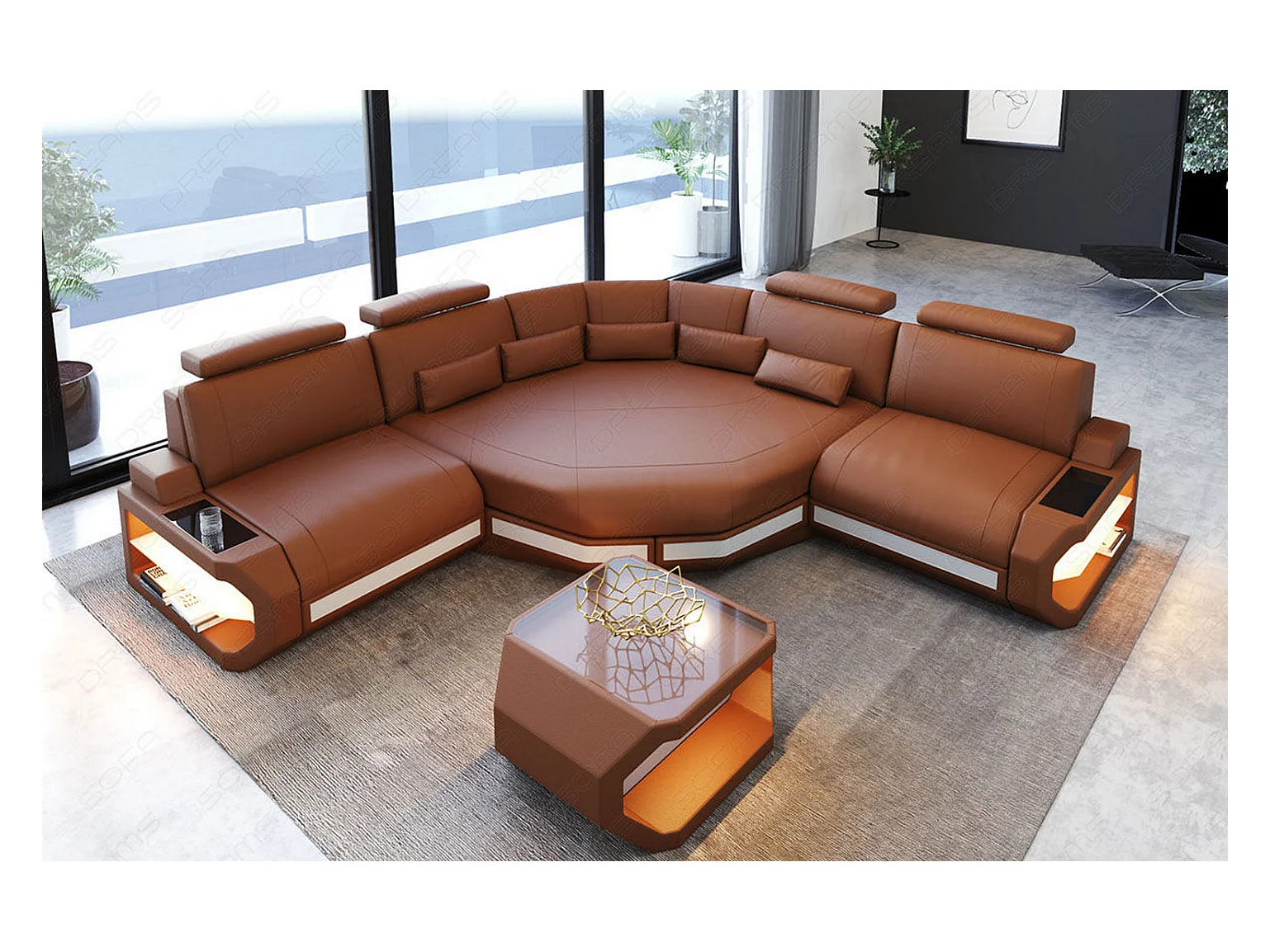 Ledersofa Asti L Mini Kunstleder Braun Weiß