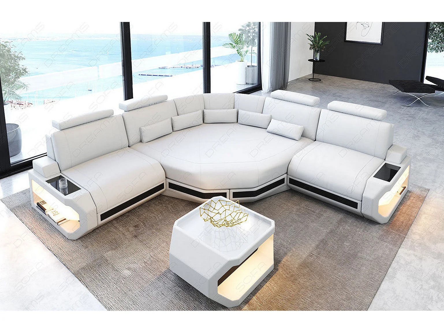 Ledersofa Asti L Mini Ledermix Weiß Schwarz