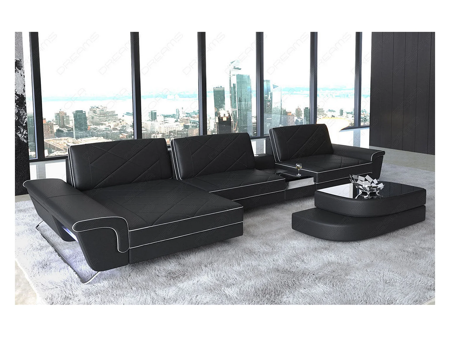Ledersofa Bari L Ledermix Schwarz Weiß Links