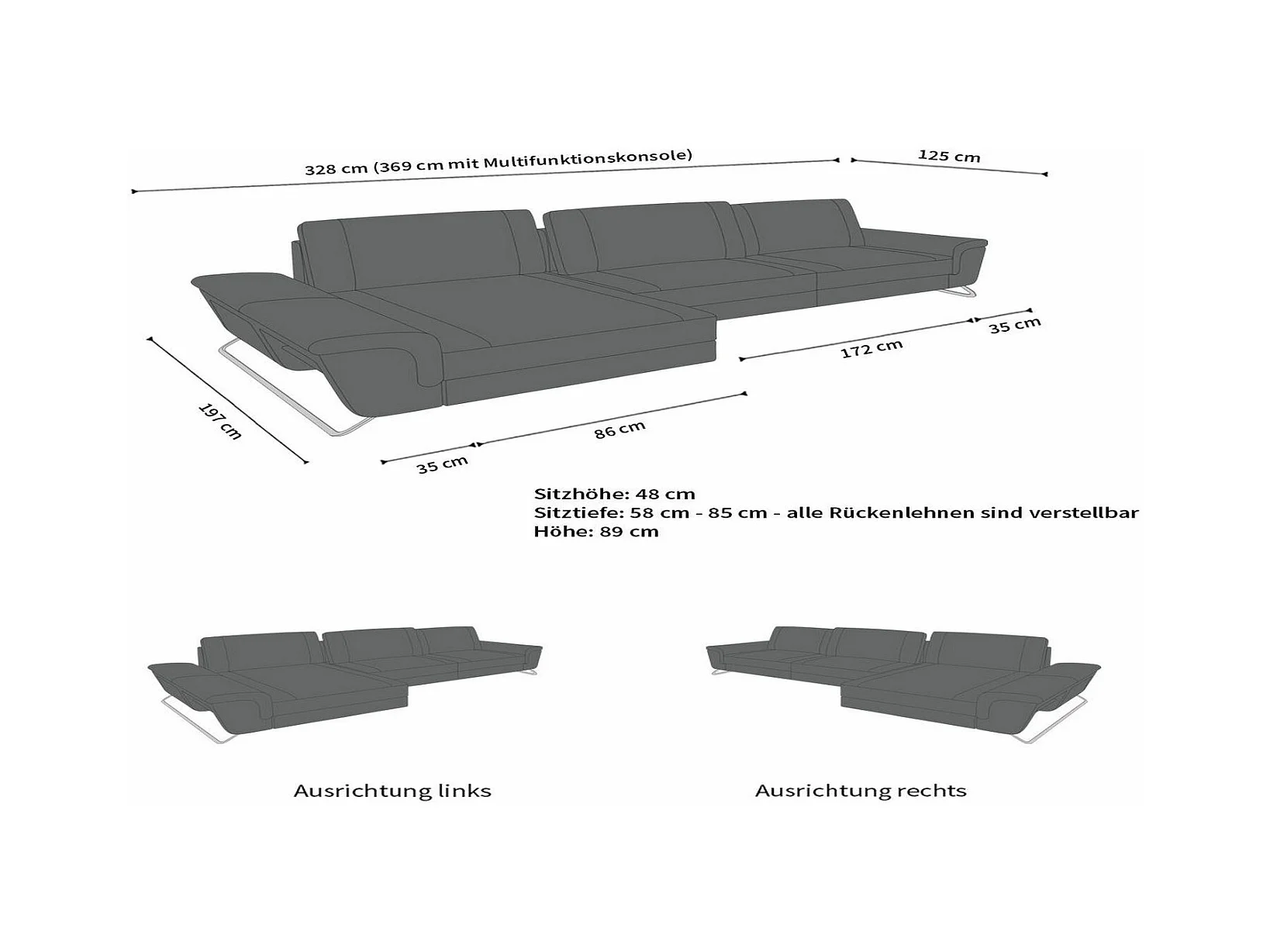 Ledersofa Bari L Kunstleder Schwarz Grau Links