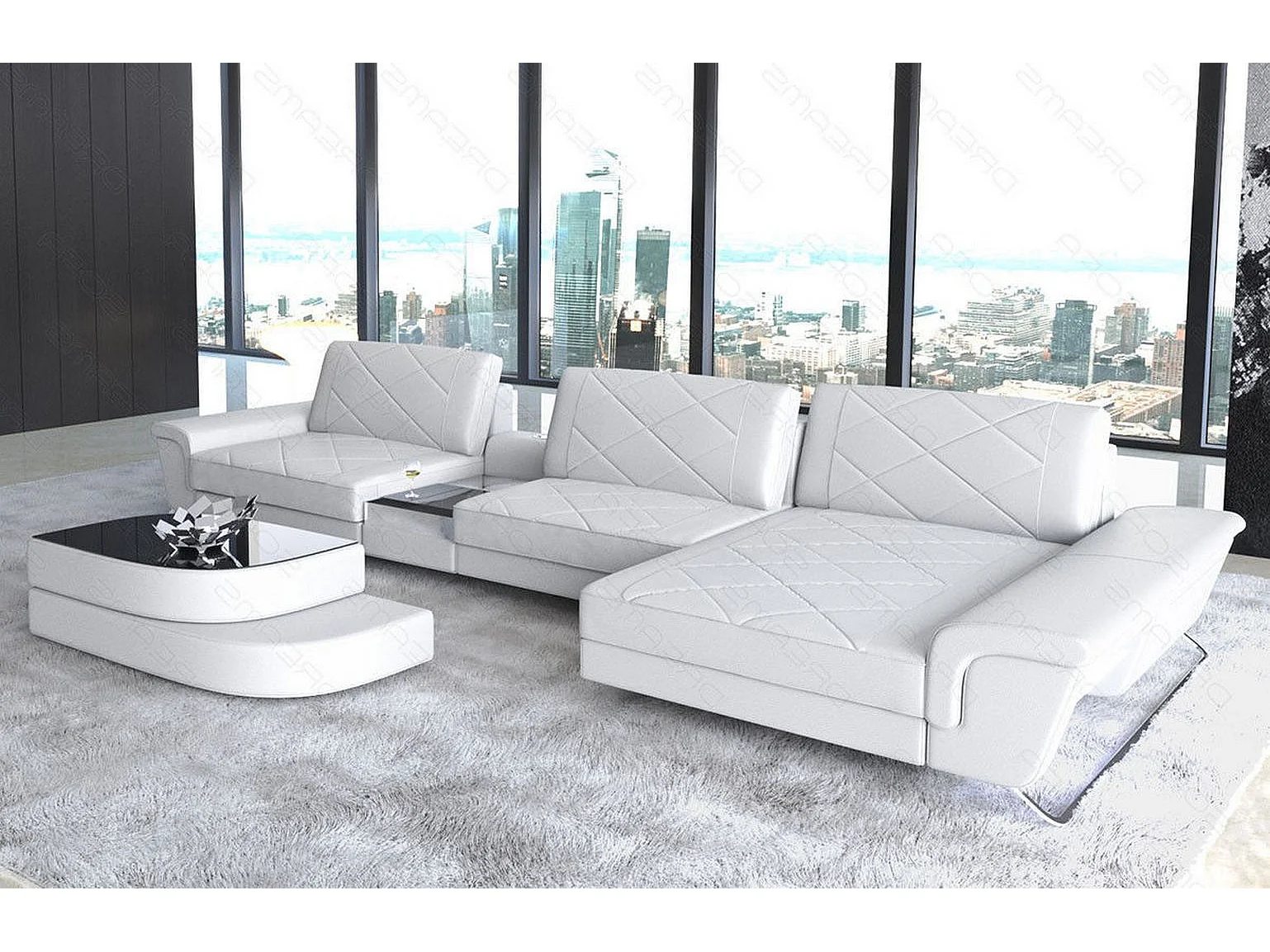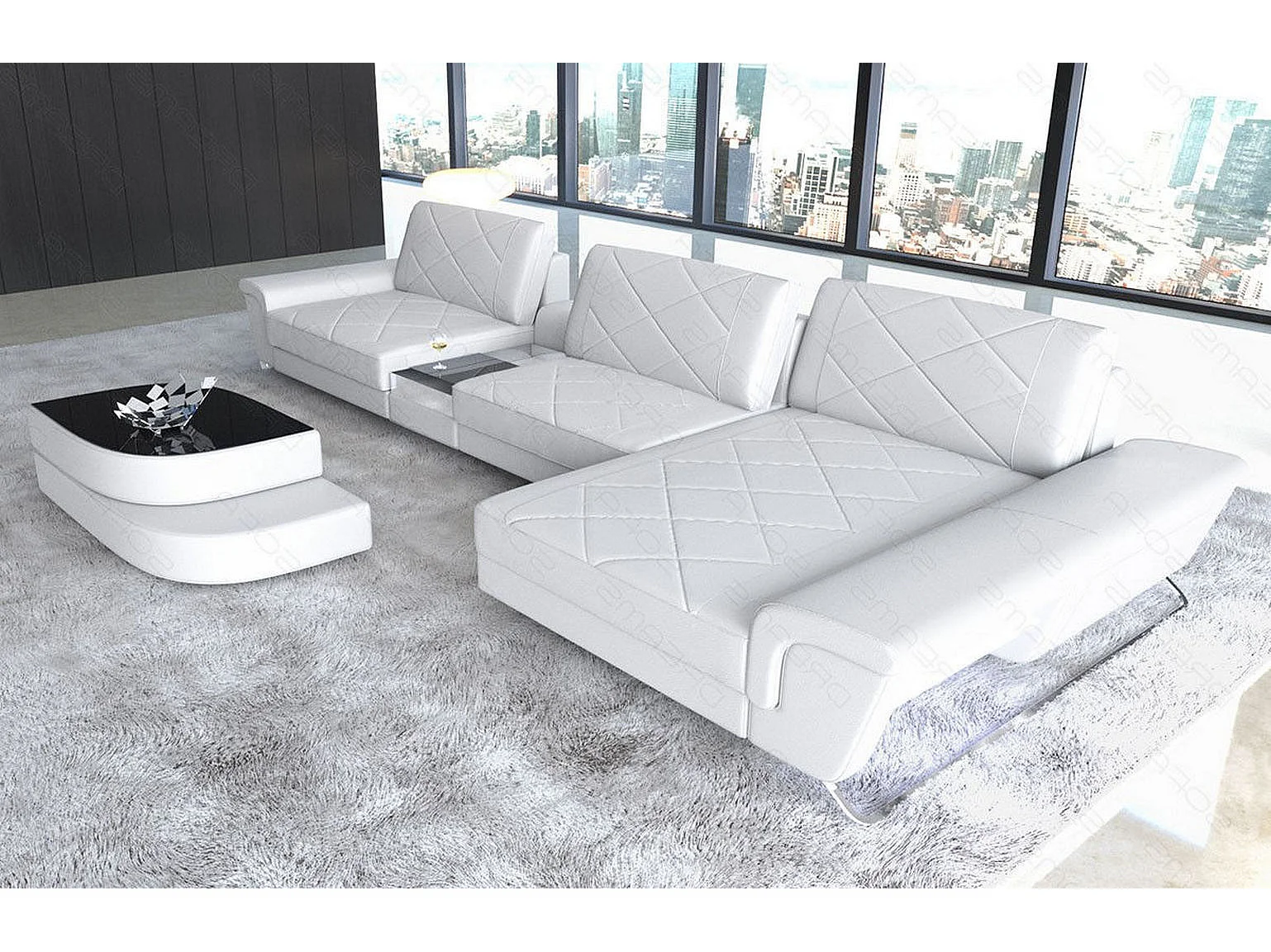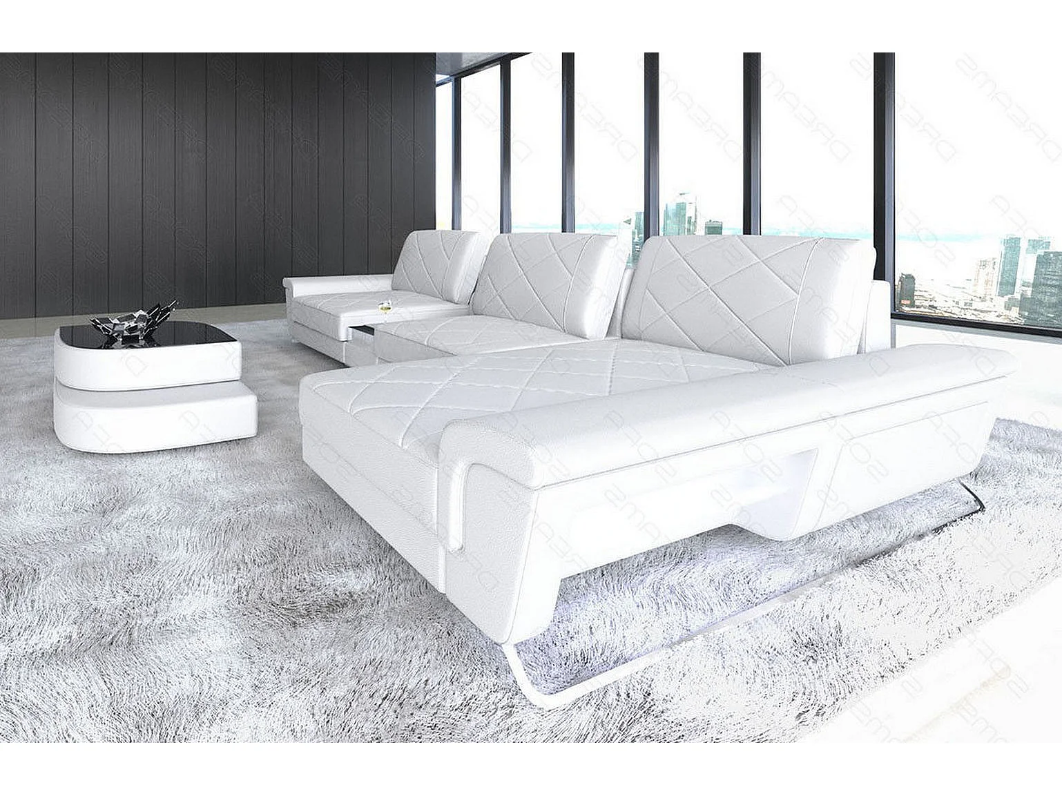 Ledersofa Bari L Ledermix Schwarz Weiß Rechts