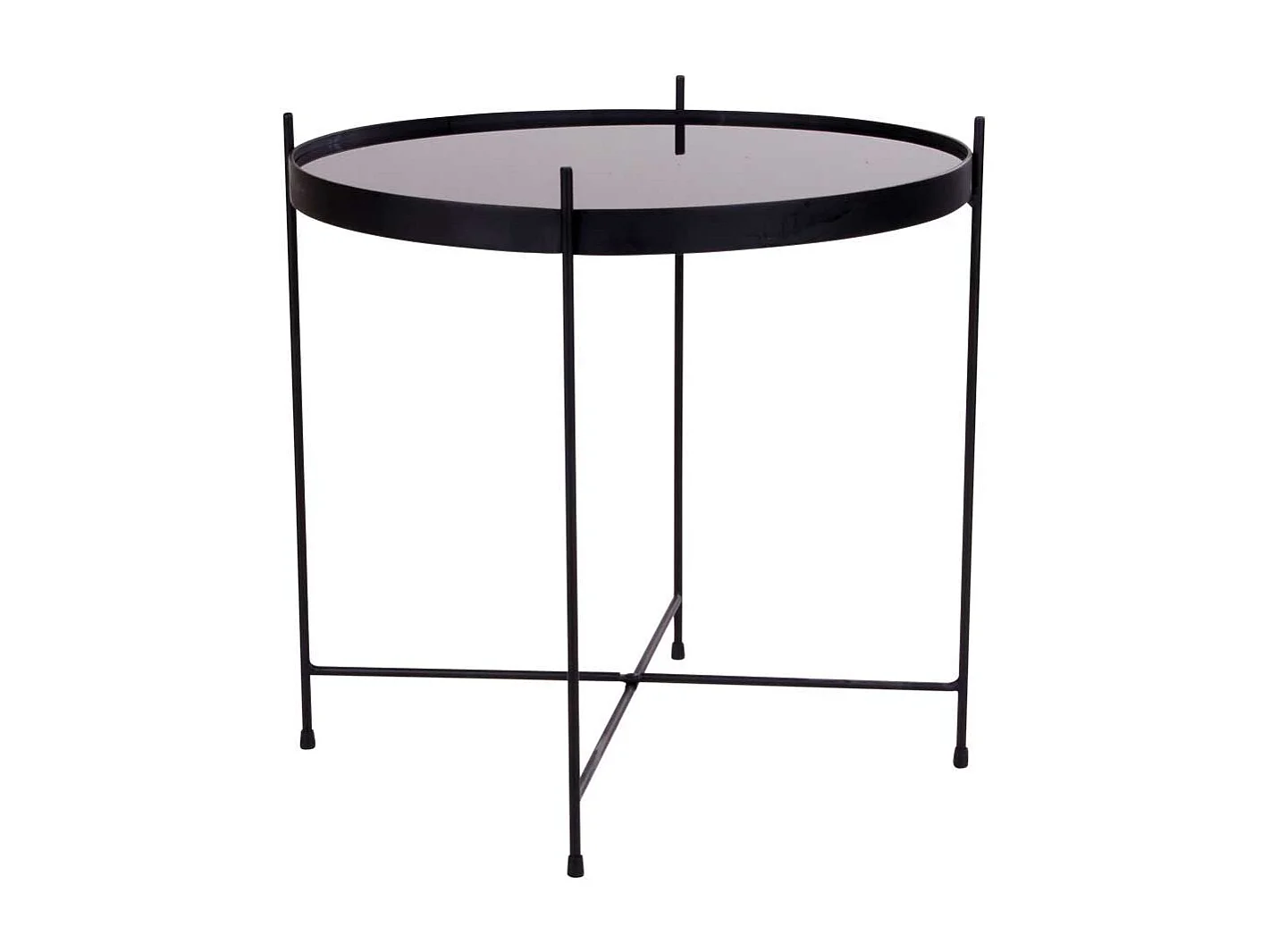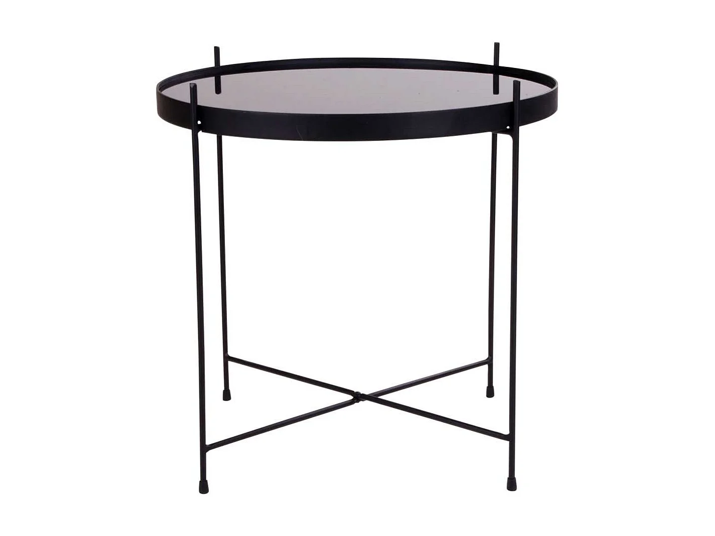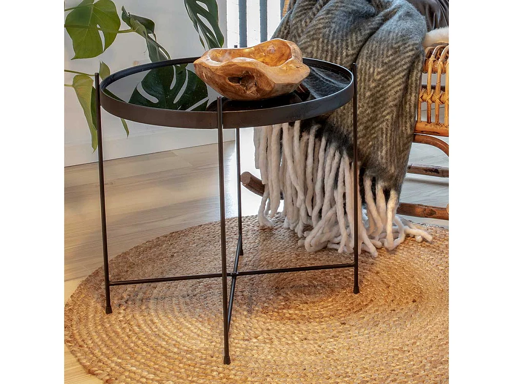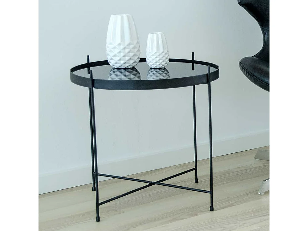 Sofa Beistelltisch in Schwarz runder Glasplatte